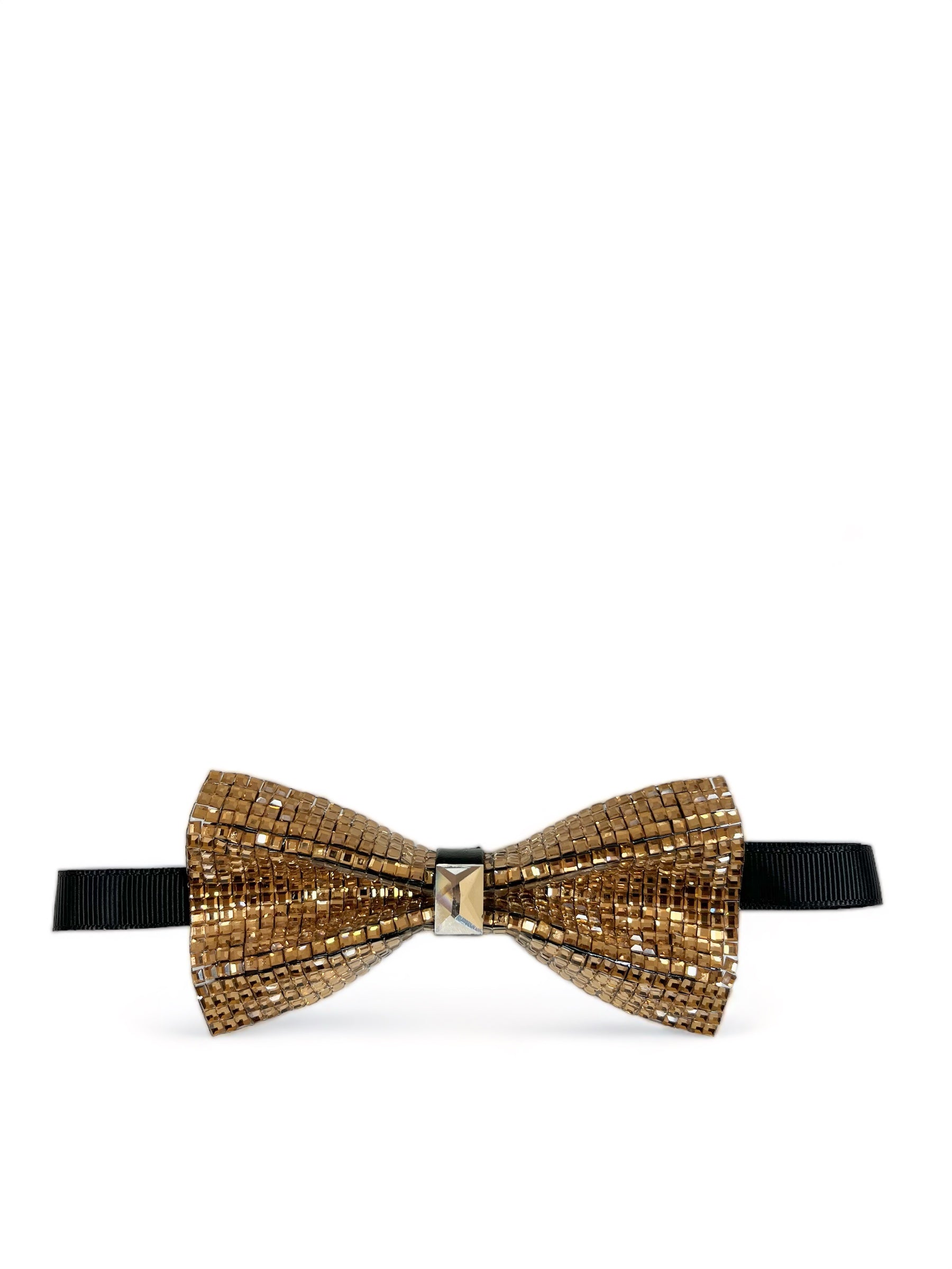Formal Gold Crystal pre-tied Bow Tie. Hand Made of 100% Polyester. Contemporary Bow Tie Cut. Modern Design, Size adjustable from...