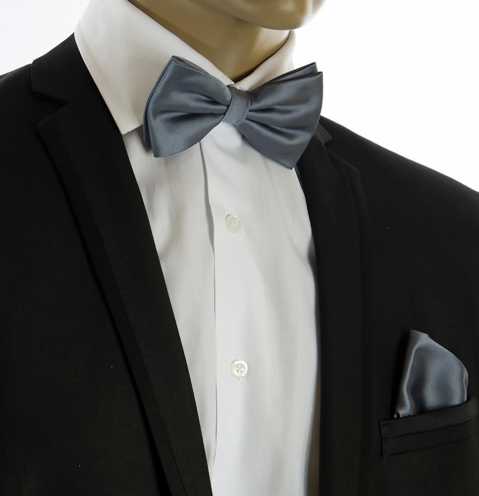 Classic Grey Wedding Bow Tie and Pocket Square Set