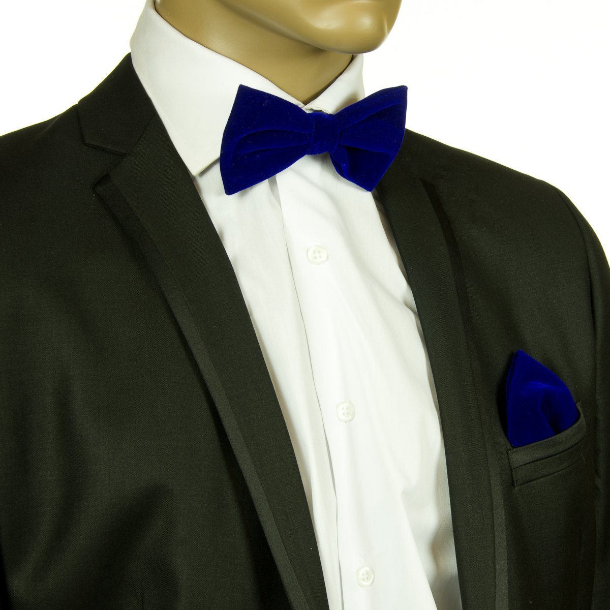 A striking Navy Blue Bow Tie & Pocket Square Set, exquisitely crafted in Velvet. Dare to be different! Fabric: 100%...
