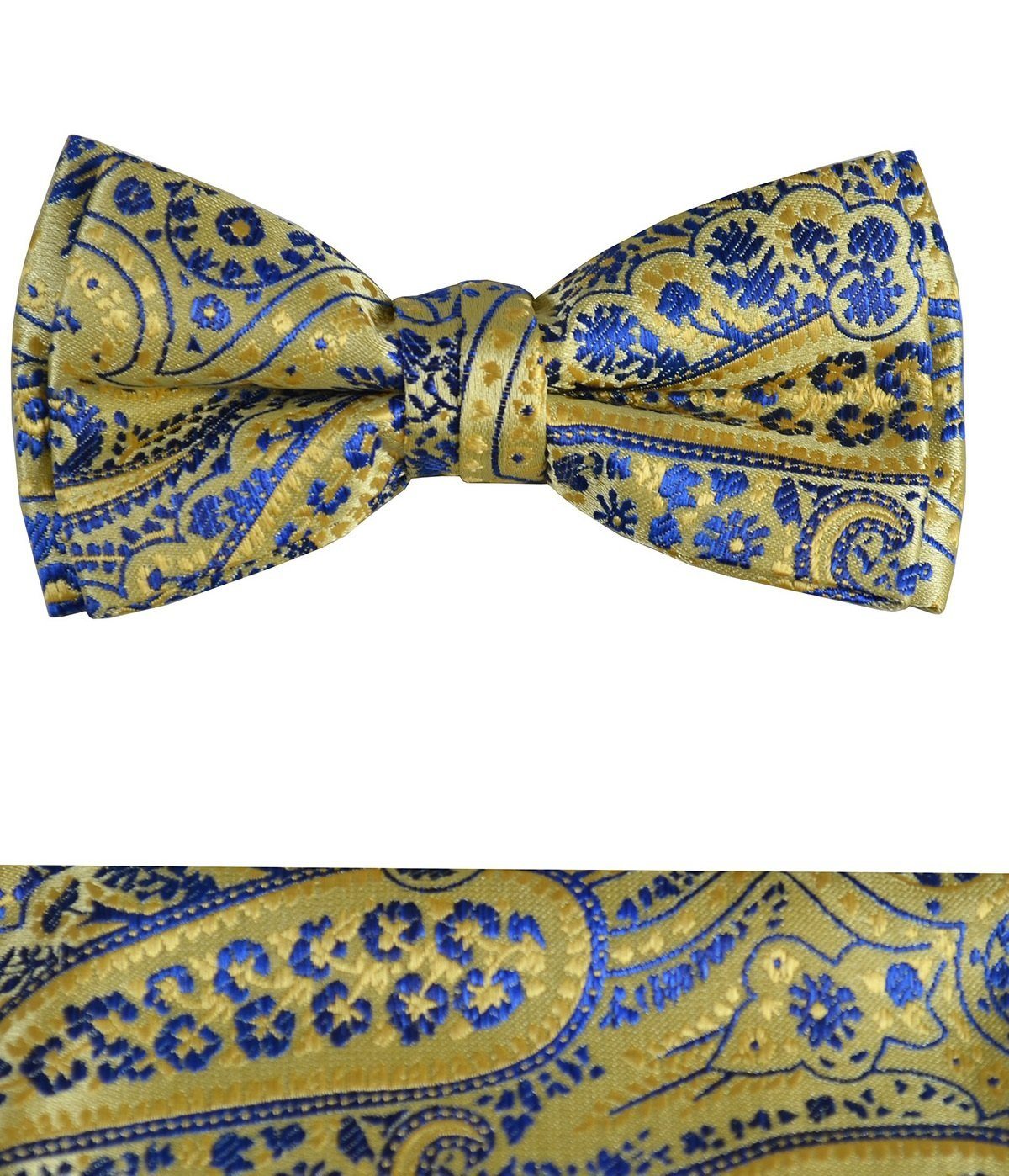 Yellow and Blue Boys Bow Tie and Pocket Square Set, Pre-tied