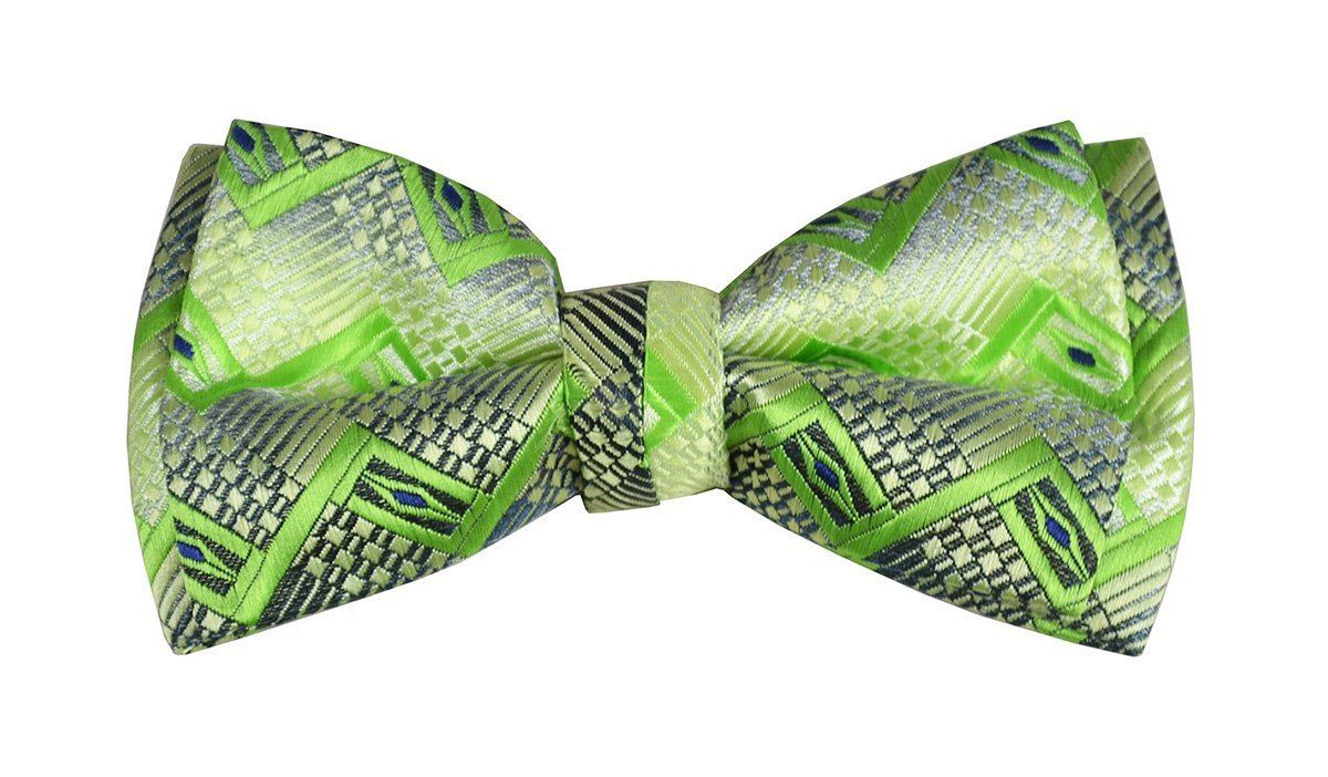 Neon Green Boys Bow Tie and Pocket Square Set, Pre-tied