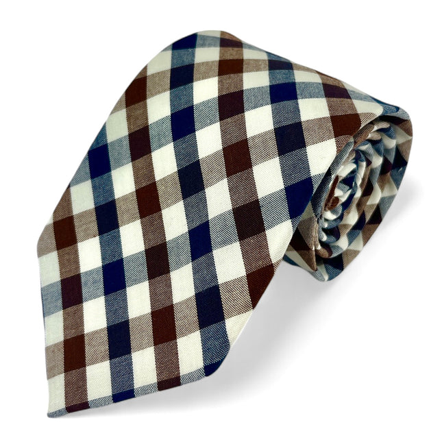• Navy and Brown Checkered Cotton Necktie Paul Malone Ties - Paul Malone.com Navy and Brown Checkered Cotton Necktie Paul Malone Ties - Paul Malone.com