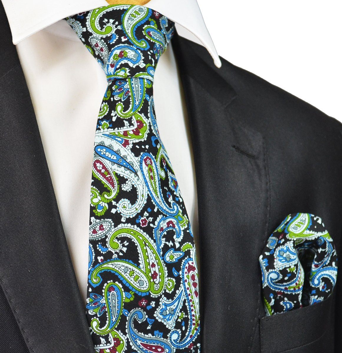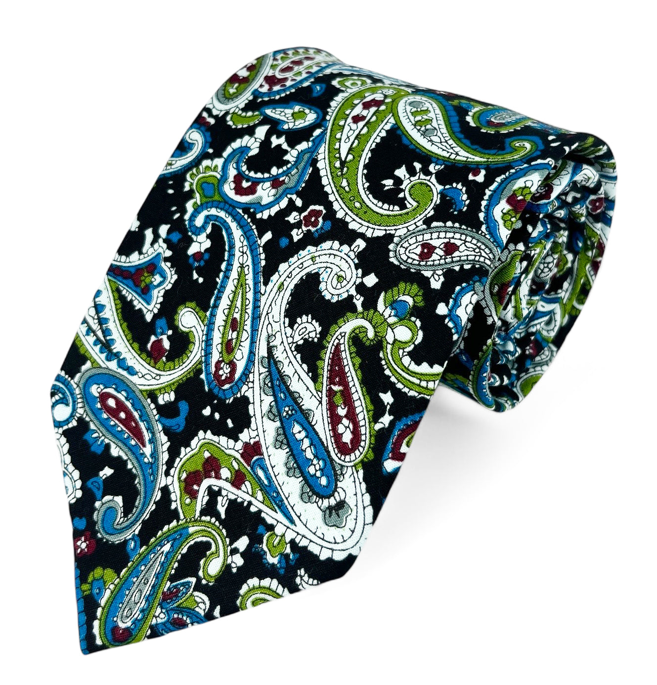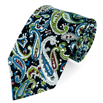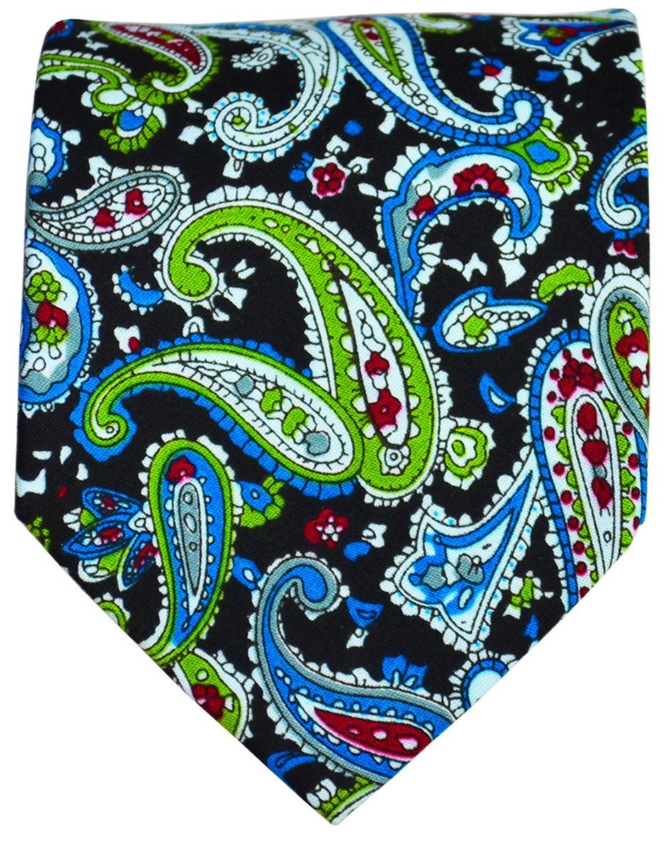 This handcrafted 100% cotton men's necktie by Paul Malone features a stylish black, green, and blue paisley design. It comes...