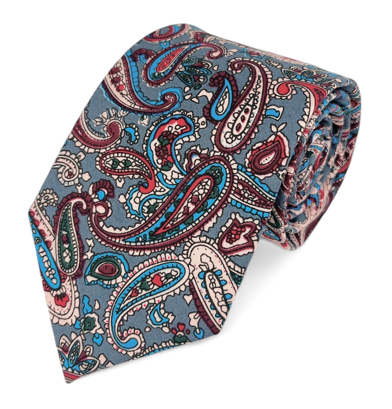 Introducing the Grey and Burgundy Artisan Paisley Cotton Tie - the perfect accessory for any fashionable gentleman. This tie, made...