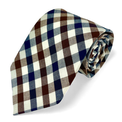 Experience luxury with the Paul Malone Navy and Brown Checkered Cotton Necktie, handmade and expertly woven with 100% cotton. Complete...