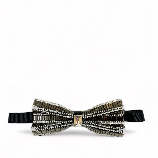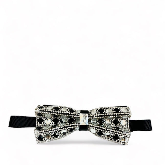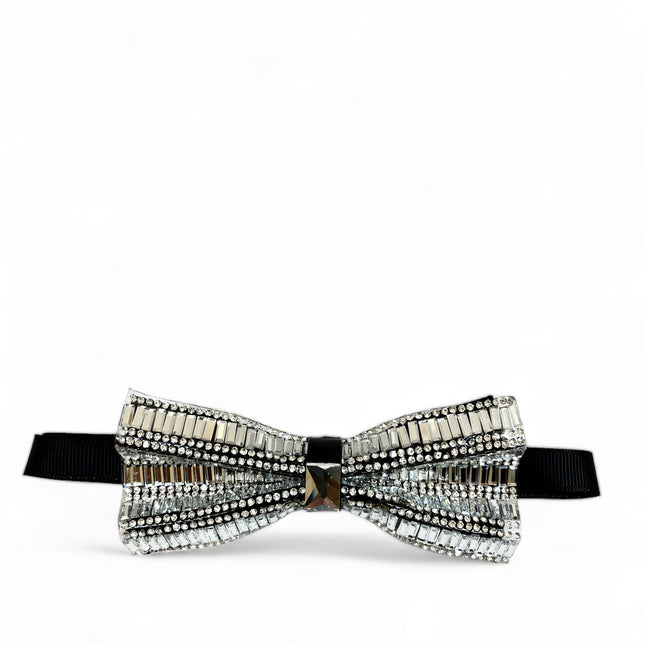 Silver and Black Jeweled Bow Tie