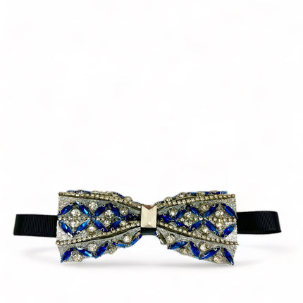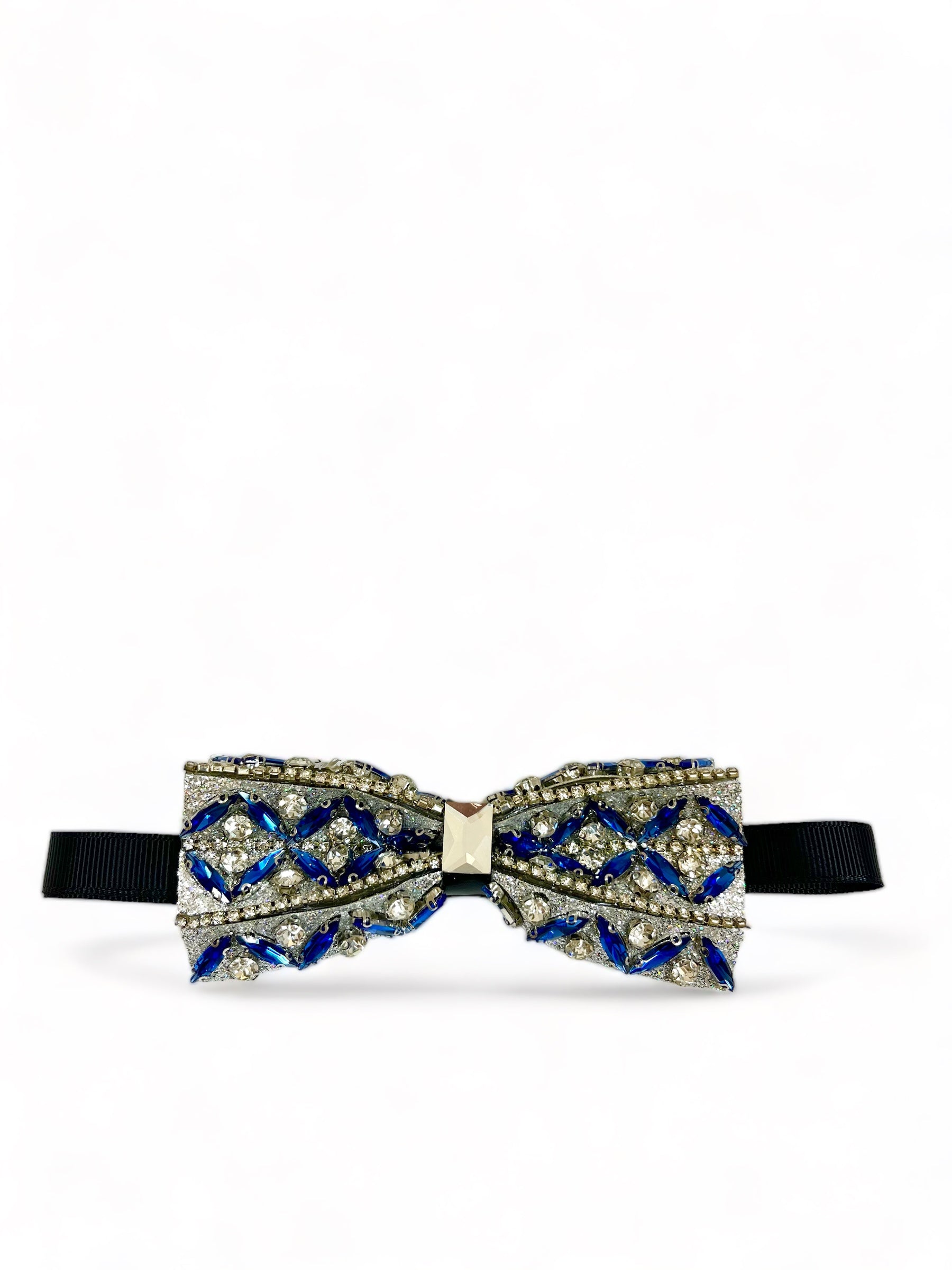 Formal Imperial Blue Jeweled pre-tied Bow Tie. Hand Made of 100% Polyester. Slim Bow Tie Cut. Modern Design, Size adjustable...