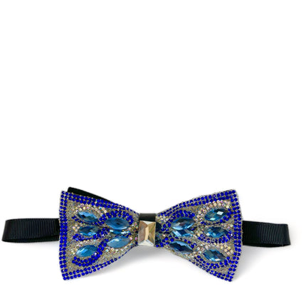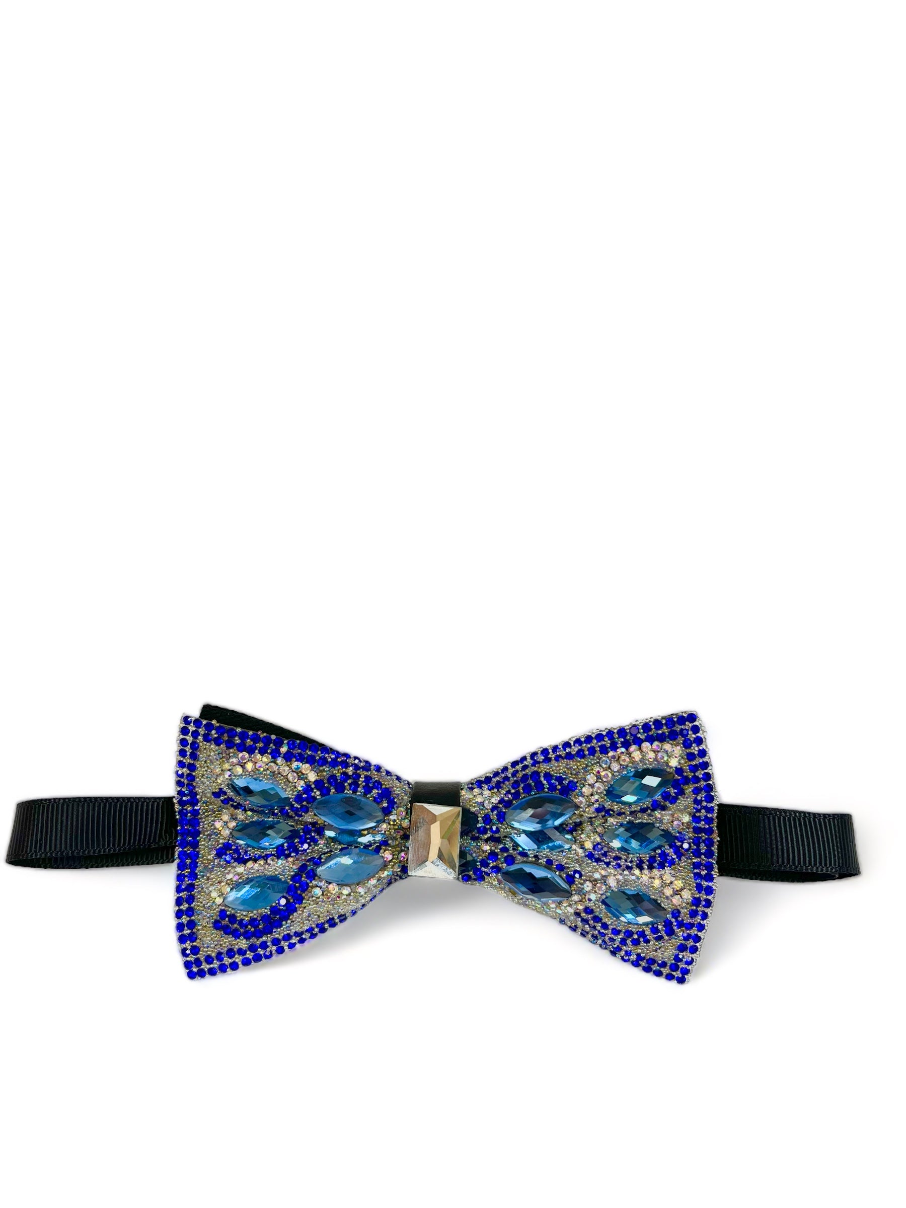 Formal Royal Blue Jeweled pre-tied Bow Tie. Hand Made of 100% Polyester. Slim Bow Tie Cut. Modern Design, Size adjustable...