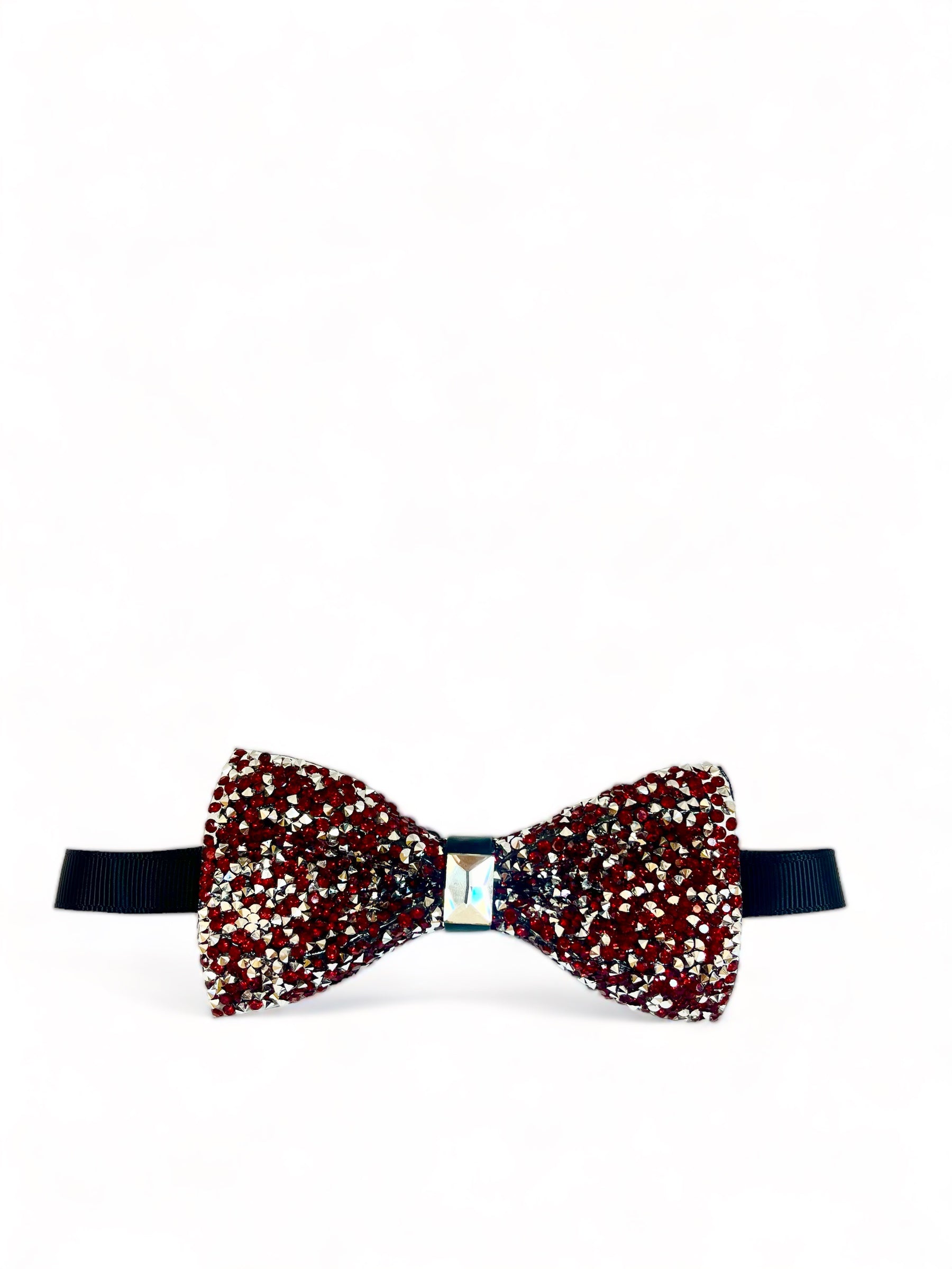 Formal Burgundy and Silver Rhinestone pre-tied Bow Tie. Hand Made of 100% Polyester. Contemporary Bow Tie Cut. Modern Design, Size...