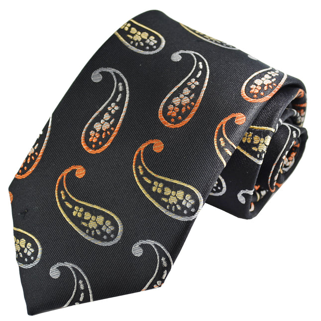 Black, Gold and Burnt Orange Paisley Silk Necktie by Paul Malone