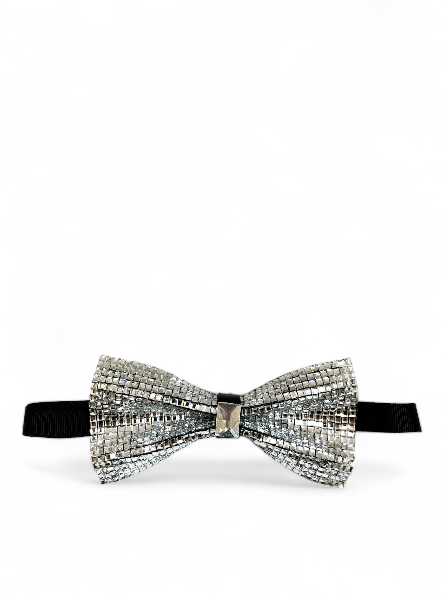 Formal Silver Crystal pre-tied Bow Tie. Hand Made of 100% Polyester. Contemporary Bow Tie Cut. Modern Design, Size adjustable from...