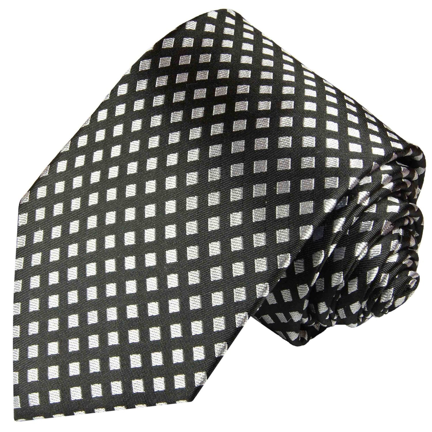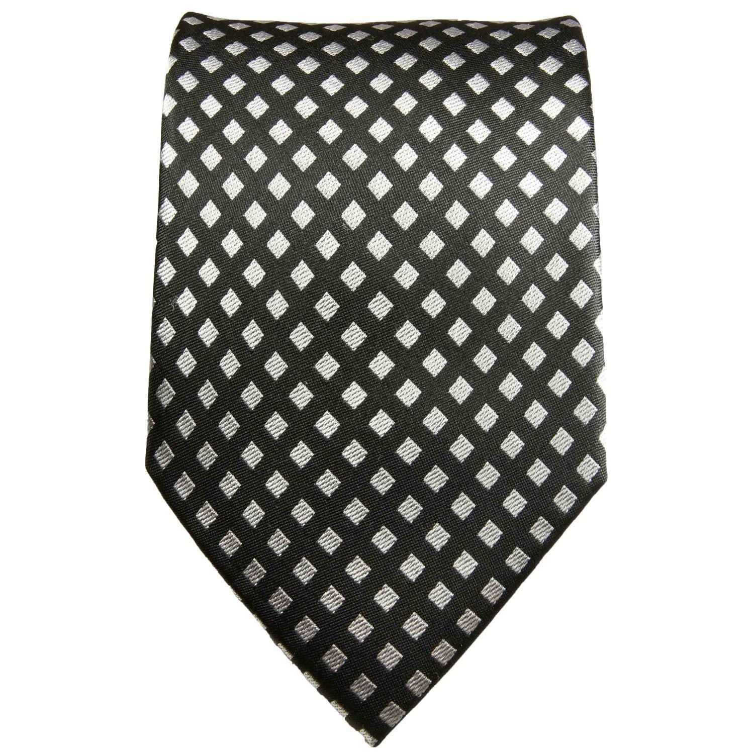 Black and Silver-White Diamond Plaid Silk Slim Necktie by Paul Malone. Hand Made from 100% Silk, jacquard woven. Imported. A...