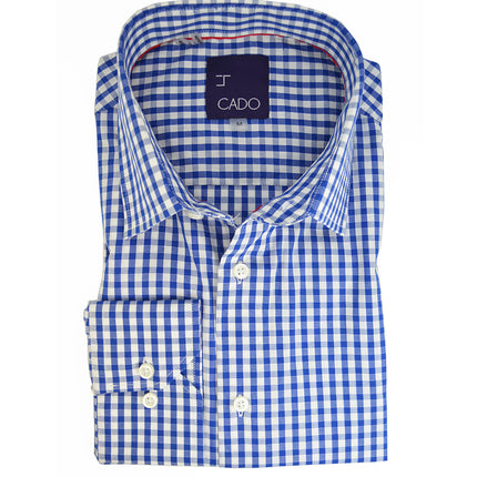 Exciting Men's Dress Shirt in a classic Blue Gingham Pattern. Great Shirt for all occasions, wear this Shirt to Formal...