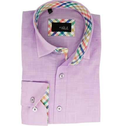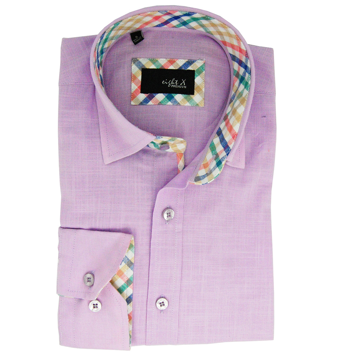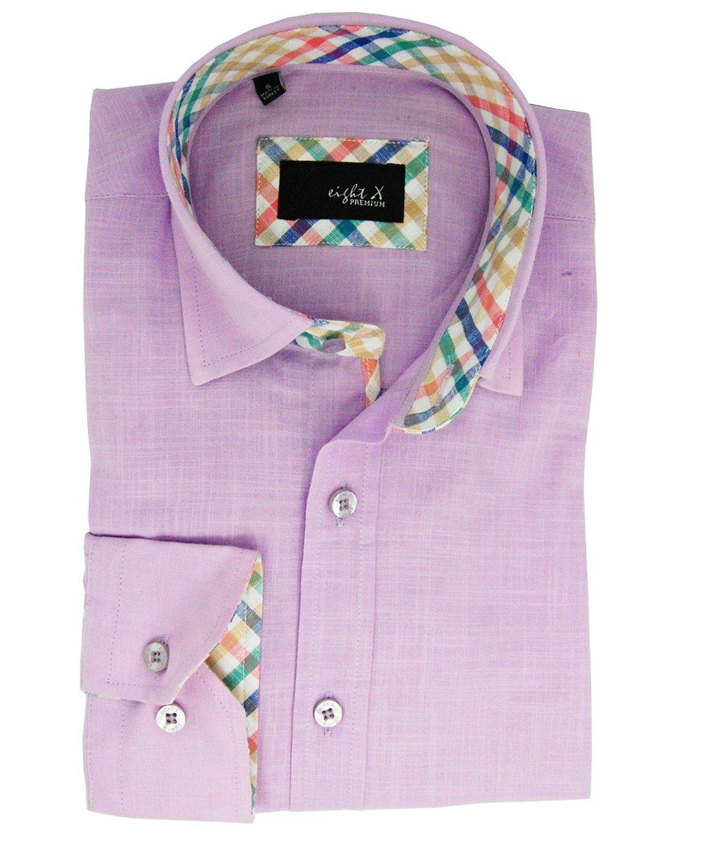 Designer Dress Shirt by Eight X in solid Lilac in a rugged Linen look. The Shirt is Hand Made of...