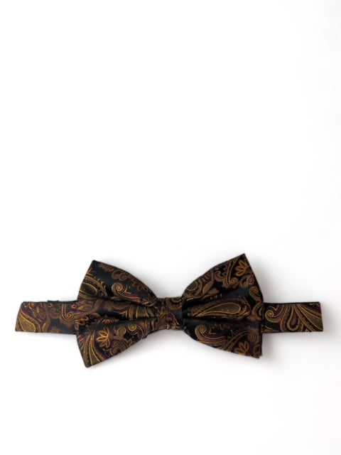 Bombay Brown and Black Paisley Paul Malone Bow Tie. Hand Made, Jacquard Woven of 100% pure Silk. The bow tie...