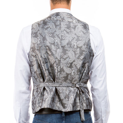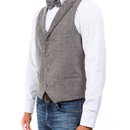 Crafted with care by Sean Alexander, this men's grey tweed suit vest offers a hybrid fit with a textured tweed...