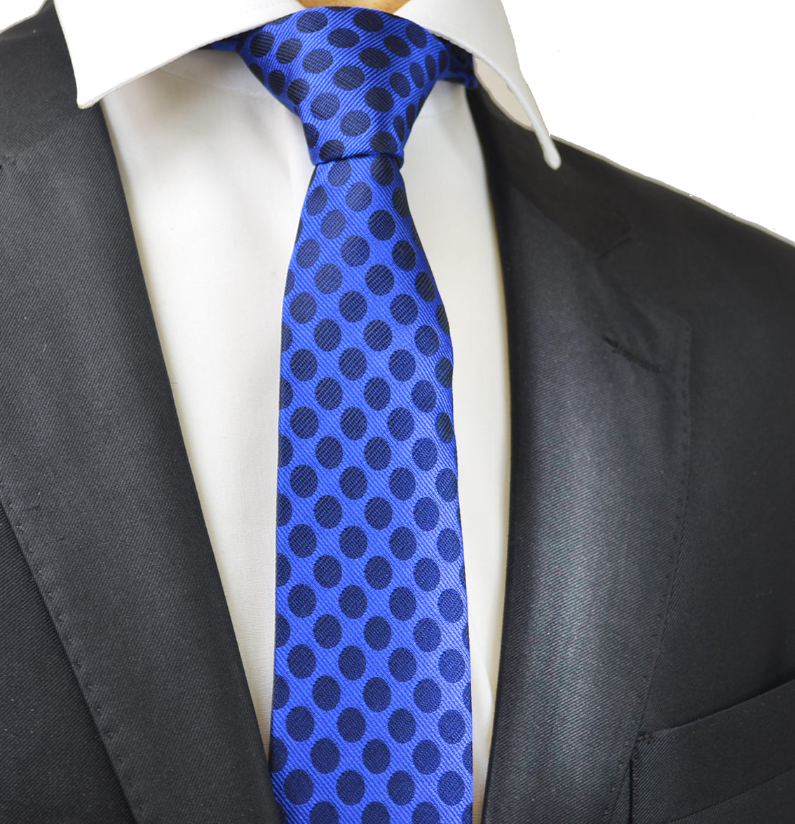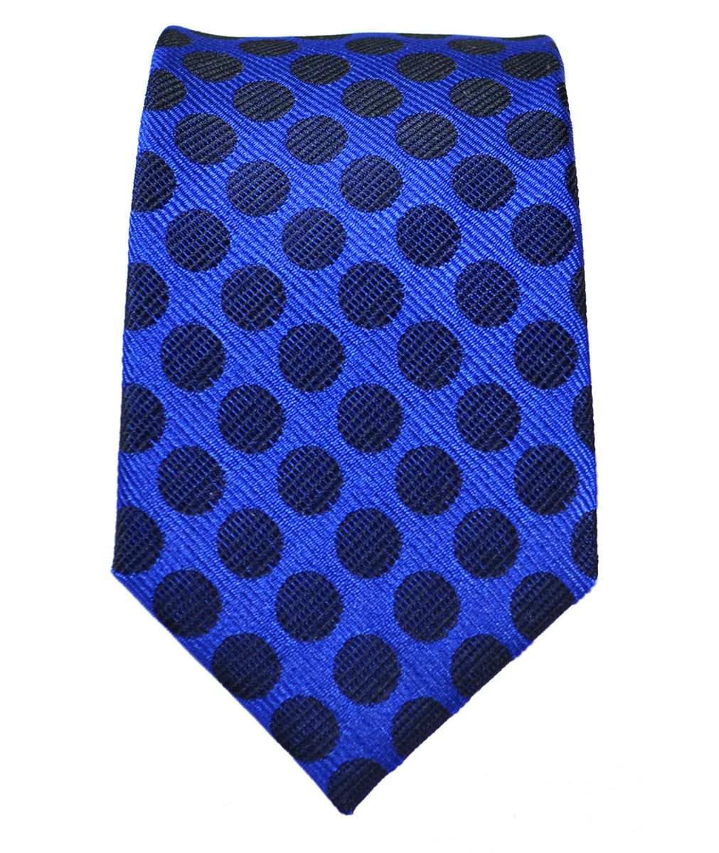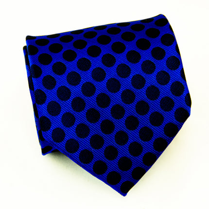 Royal Blue and Black Polka Dot Silk Necktie by Paul Malone. 100% pure Mulberry Silk . Hand Made. Jacquard Woven....