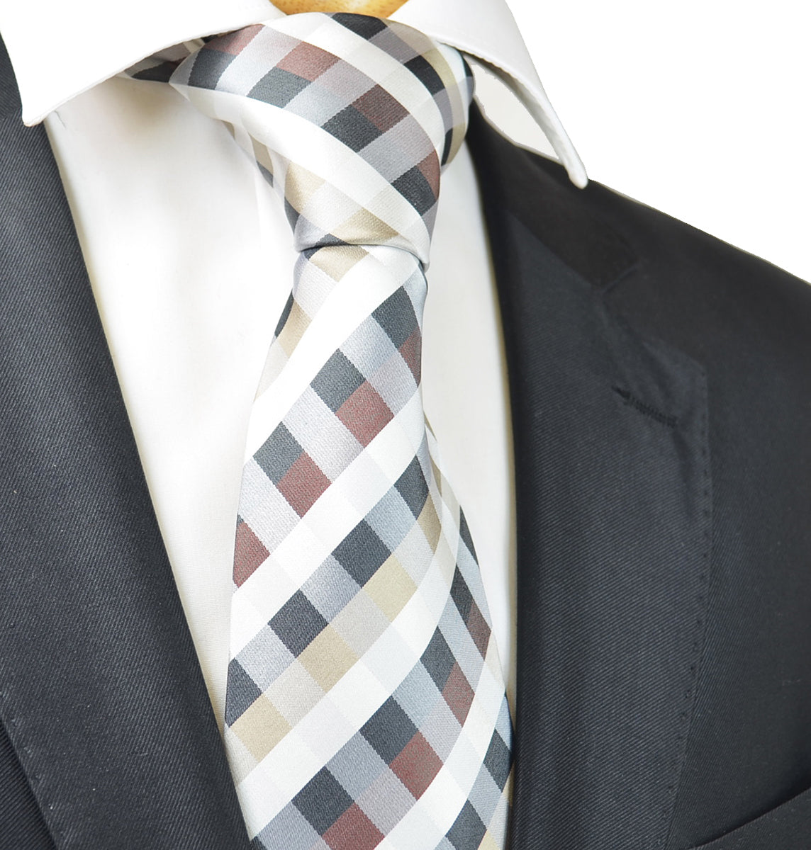 Elegant Tan and Brown Silk Necktie by Paul Malone. 100% pure Mulberry Silk . Hand Made. Jacquard Woven. Imported.
