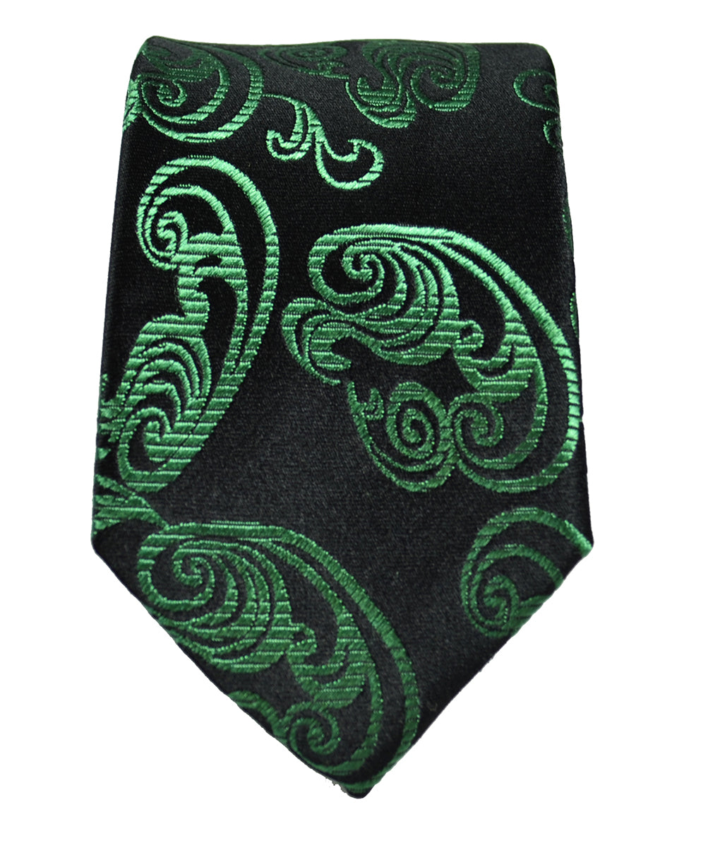 Emerald Green and Black Paisley Silk Tie. 100% Silk. Hand Made. Woven. Imported. Don this necktie and join the ranks...