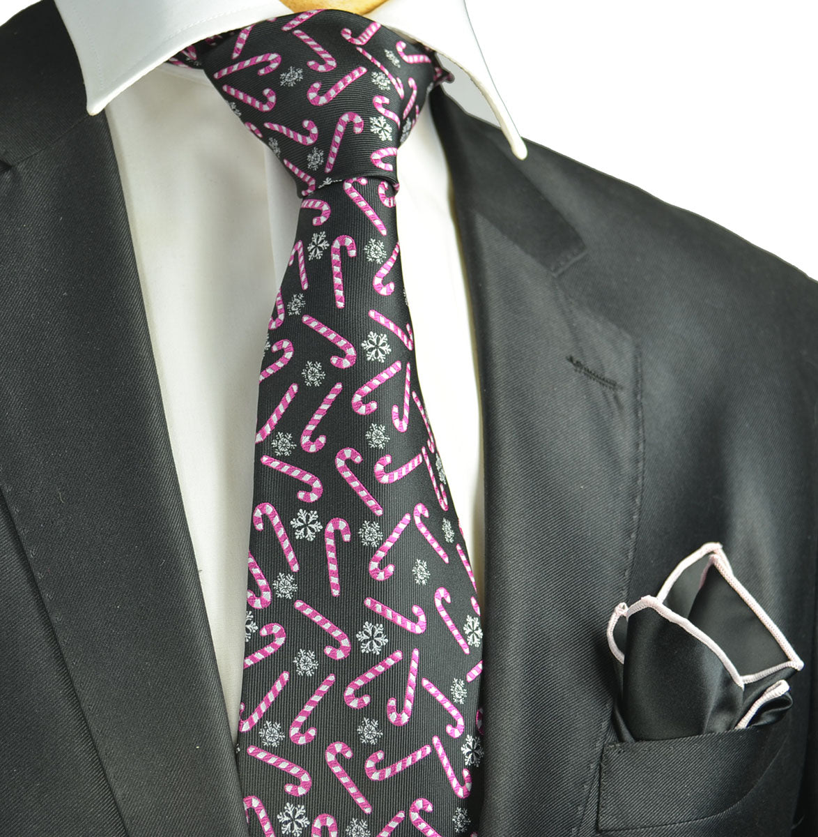 Get in the holiday spirit with our Paul Malone Candy Cane holiday necktie and Pocket Square Combination! Fabric: 100% Polyester,...