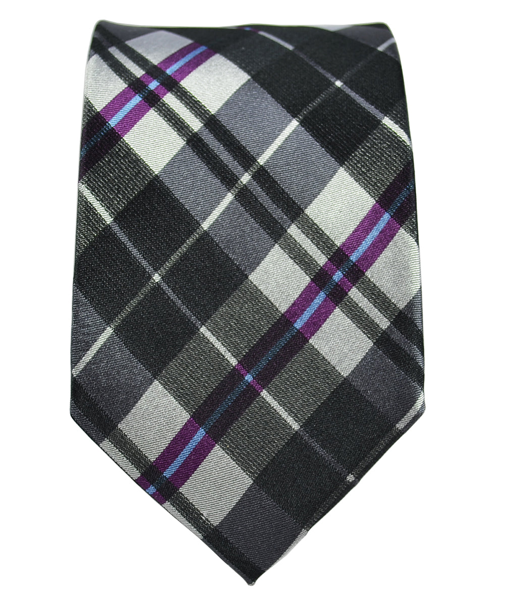 Black and Silver Plaid Paul Malone Silk Tie with Purple and Blue accents. Made of 100% pure mulberry silk, hand...