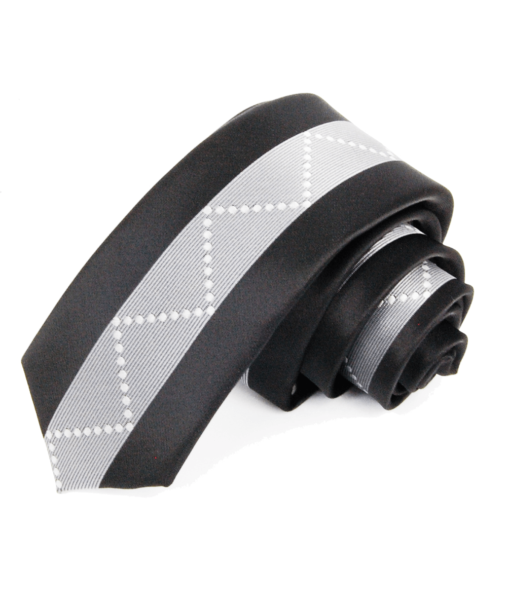 The Paul Malone Slim Panel Tie boasts an edgy yet refined design in black and silver. Ideal for both casual...