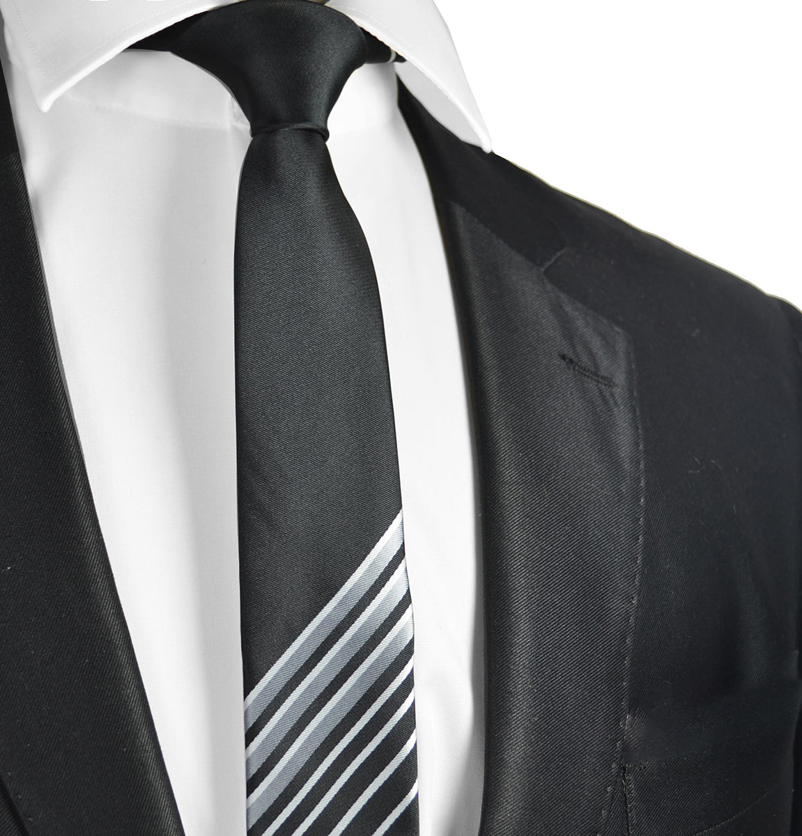 The Paul Malone Striped Slim Panel Tie boasts an edgy yet refined design in black and silver. Ideal for both...