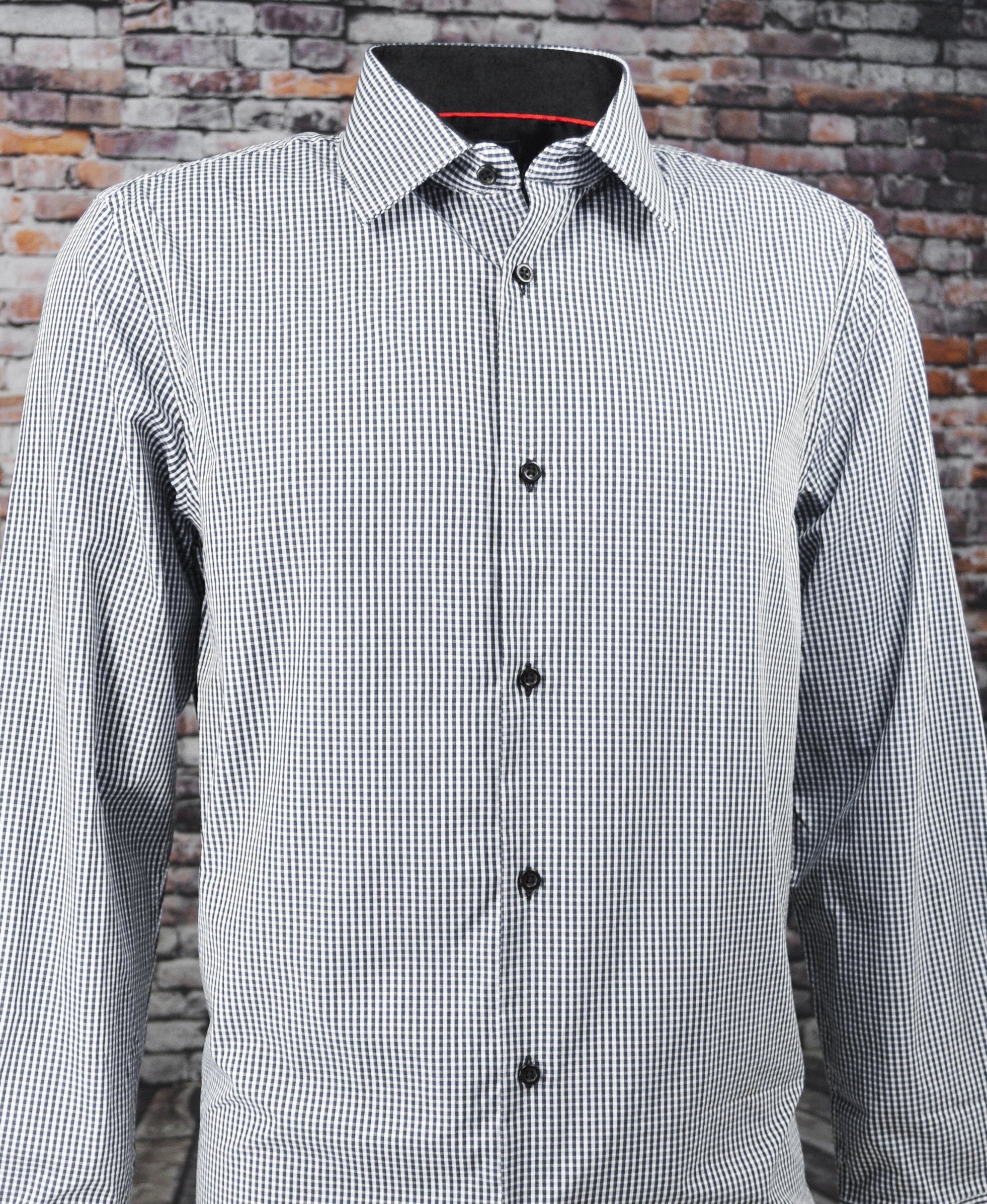 Exciting Men's Dress Shirt in a classic Black and White Gingham Pattern. Great Shirt for all occasions, wear this Shirt...