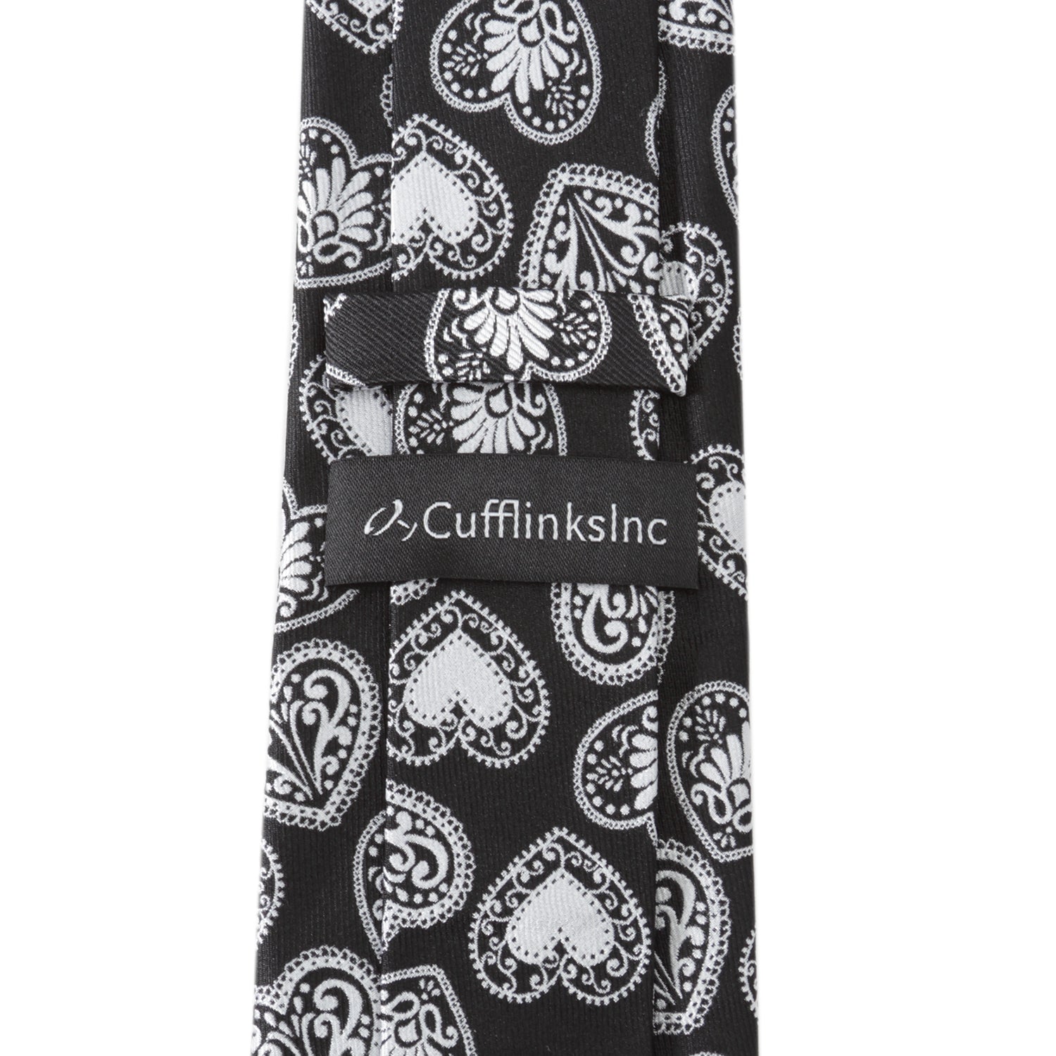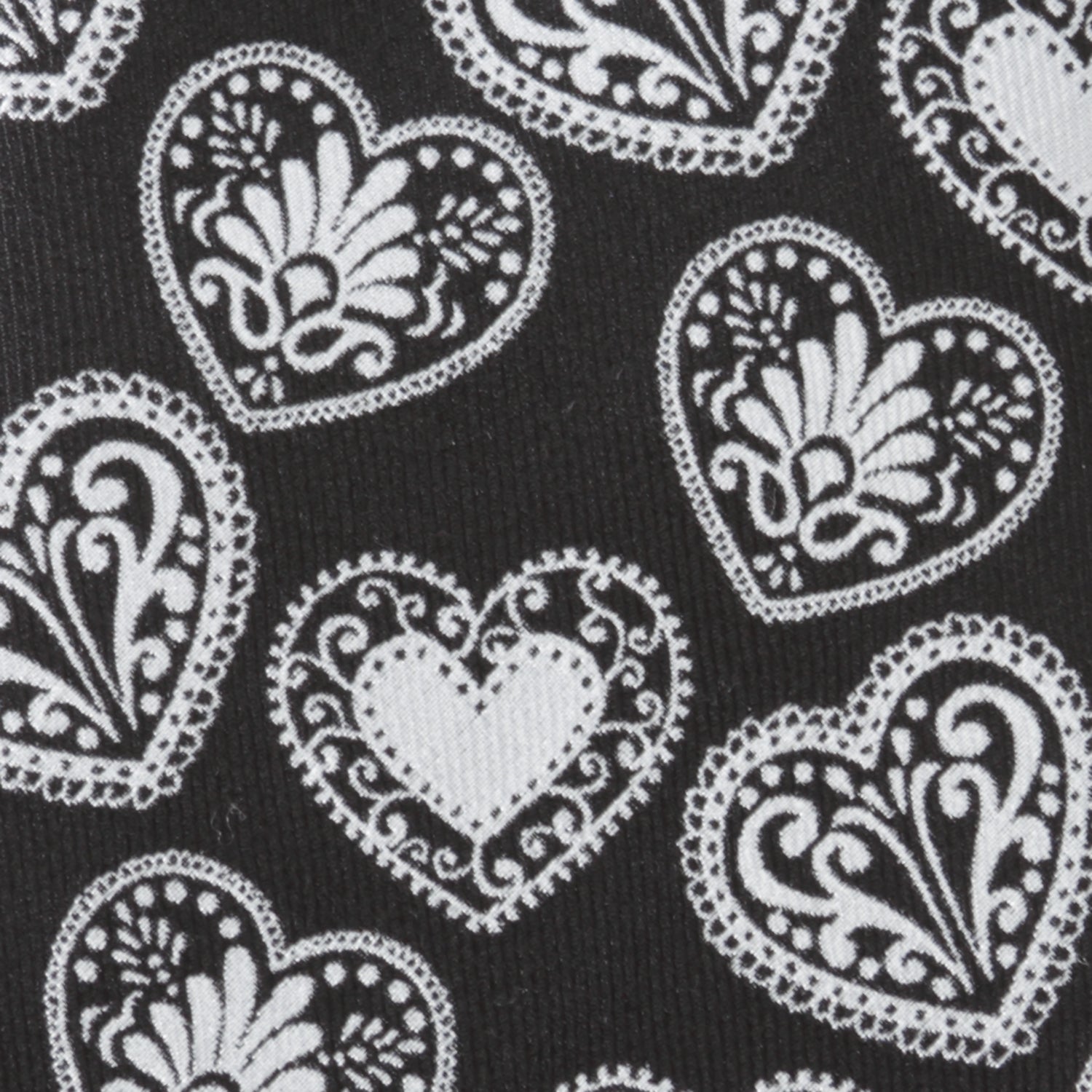 Make a bold statement about love with this dramatic black and white 100% silk tie. Intricately decorated pure white hearts...
