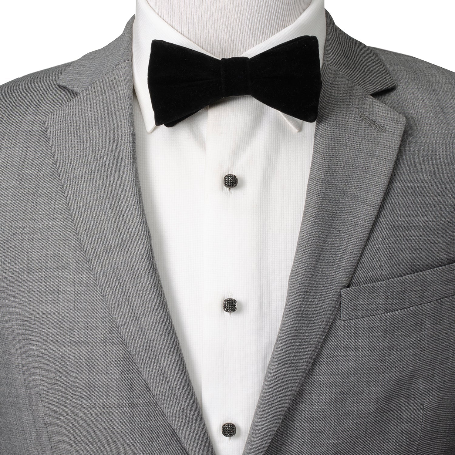 Made of black plated stainless steel with black preciosa crystals in a pave setting, these tuxedo studs are a modern...