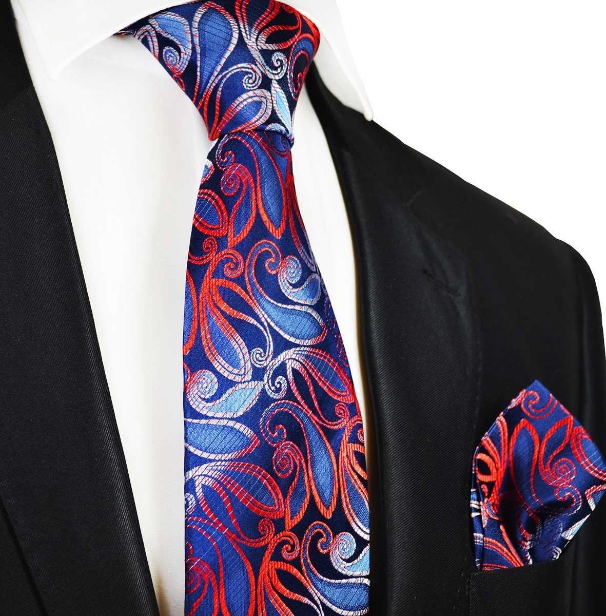 Experience the perfect balance of sophistication and playfulness with the Blue and Fire Red Paul Malone Red Line Silk Tie and Pocket Square. Handcrafted and imported, these 100% silk accessories feature a self-tipped design and a jacquard woven pattern. Upgrade your style game with this versatile, must-have set.