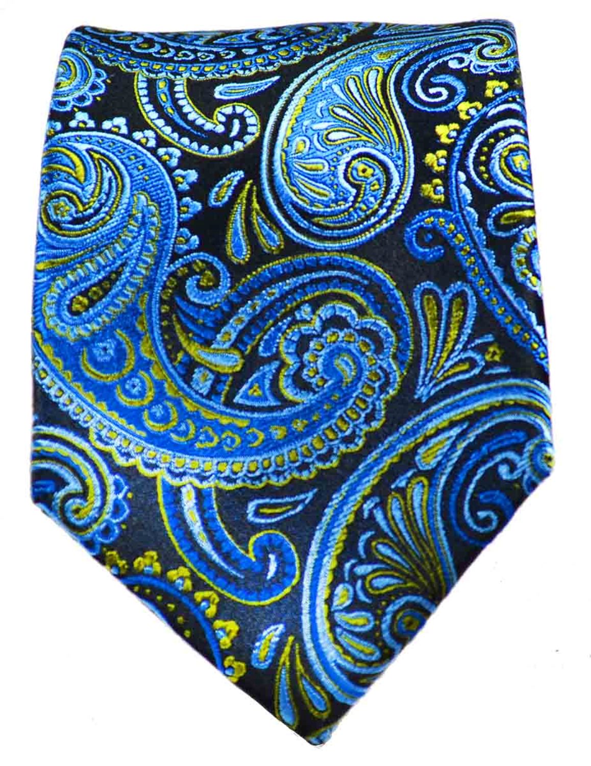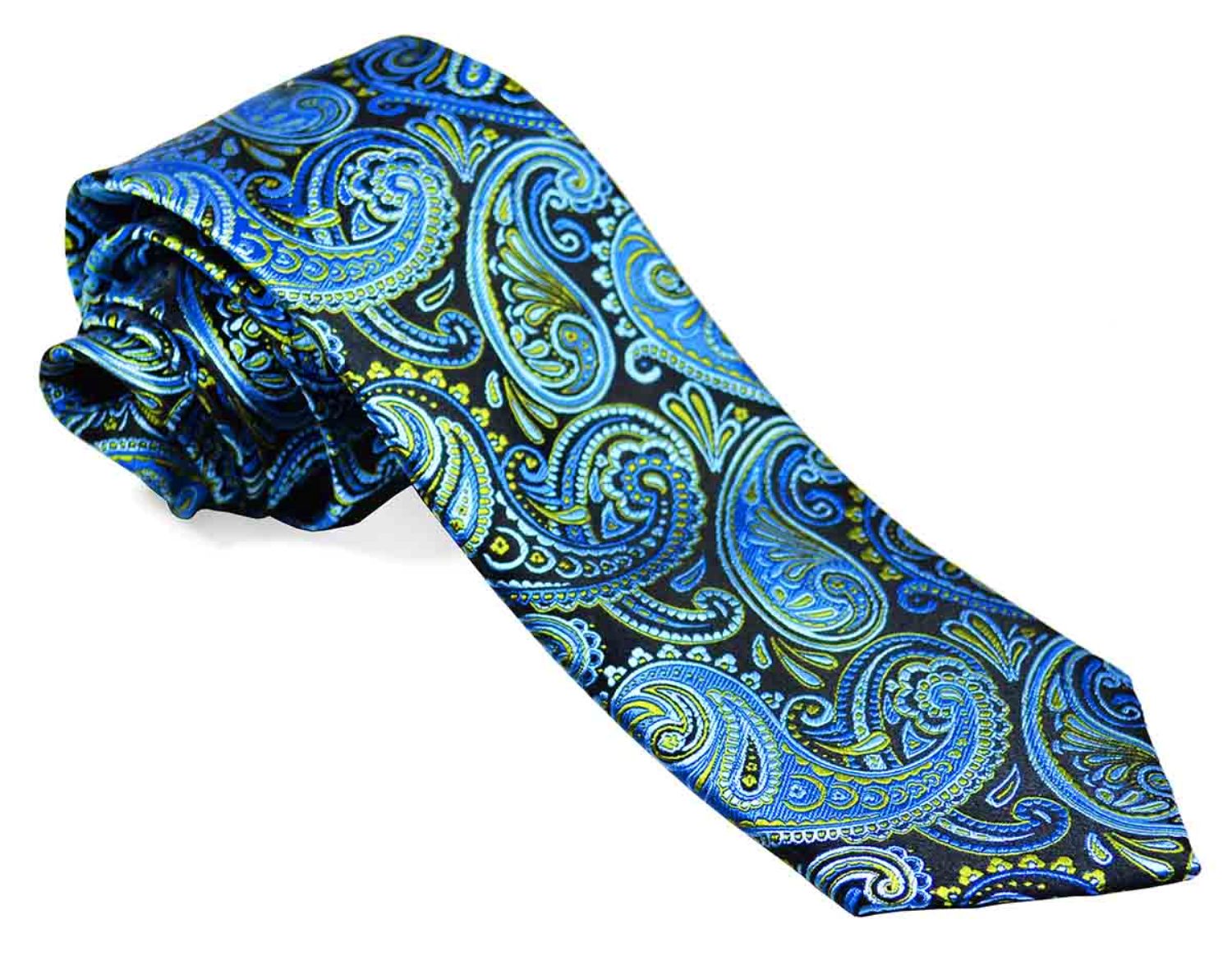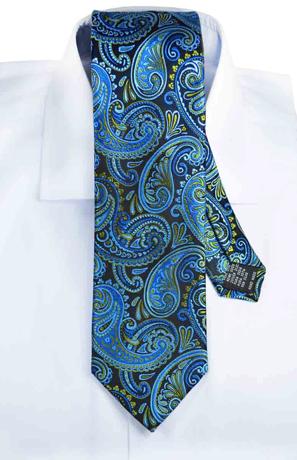 Hand Made Silk Necktie by Paul Malone in an exciting Blue and Lime Paisley. This Men's Tie is Made of...