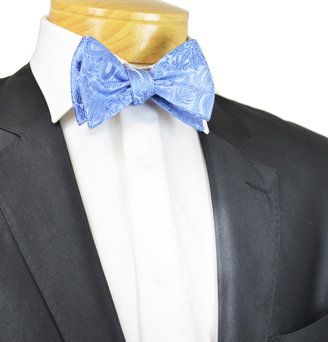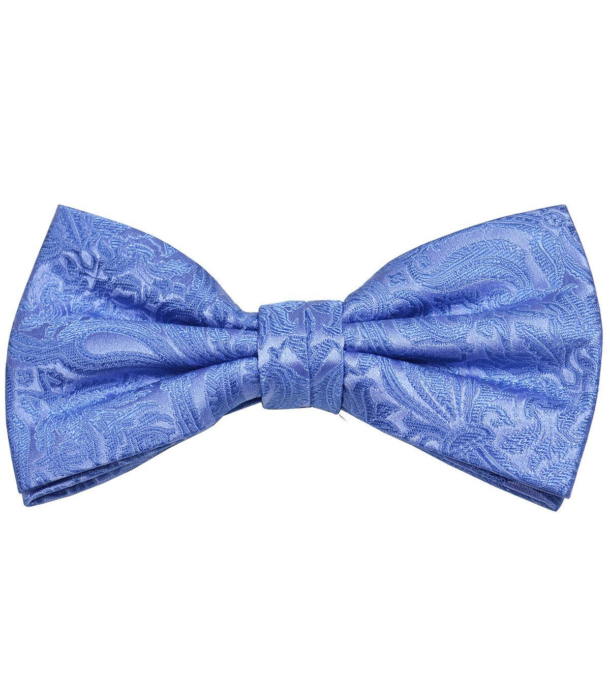 A daring Azure Blue Paisley Paul Malone Silk Bow Tie. Take risk with this adjustable style, from neck size 14...