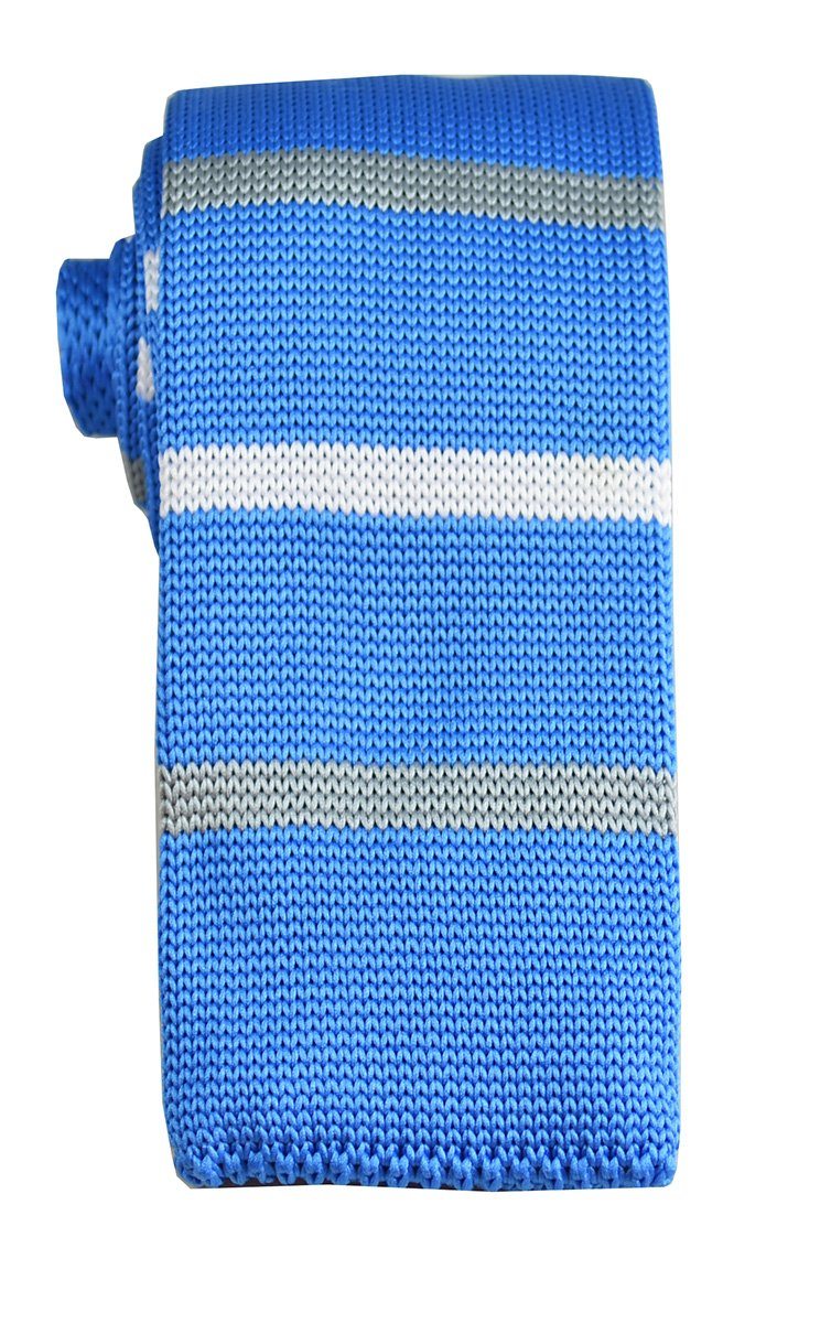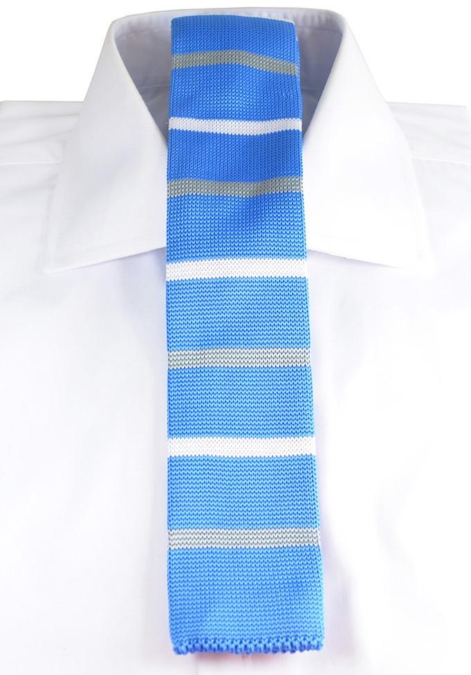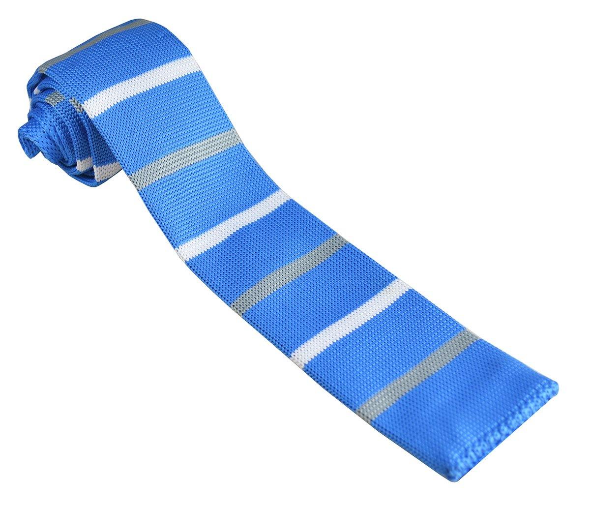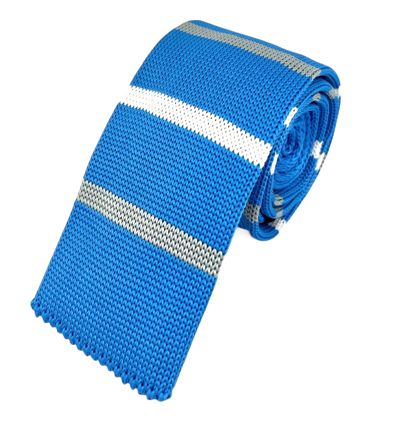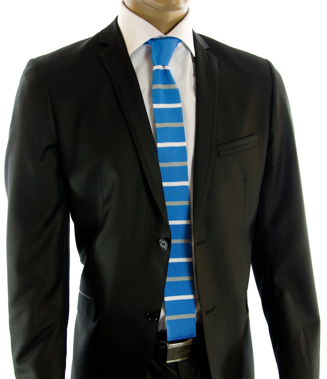 Elevate your style with the Baby Blue Striped Knit Tie by Paul Malone. This one-of-a-kind tie features a modern square...