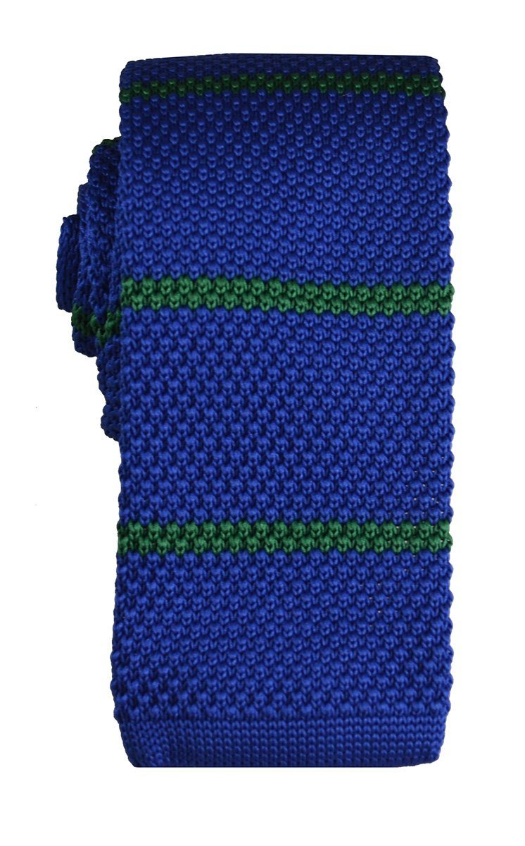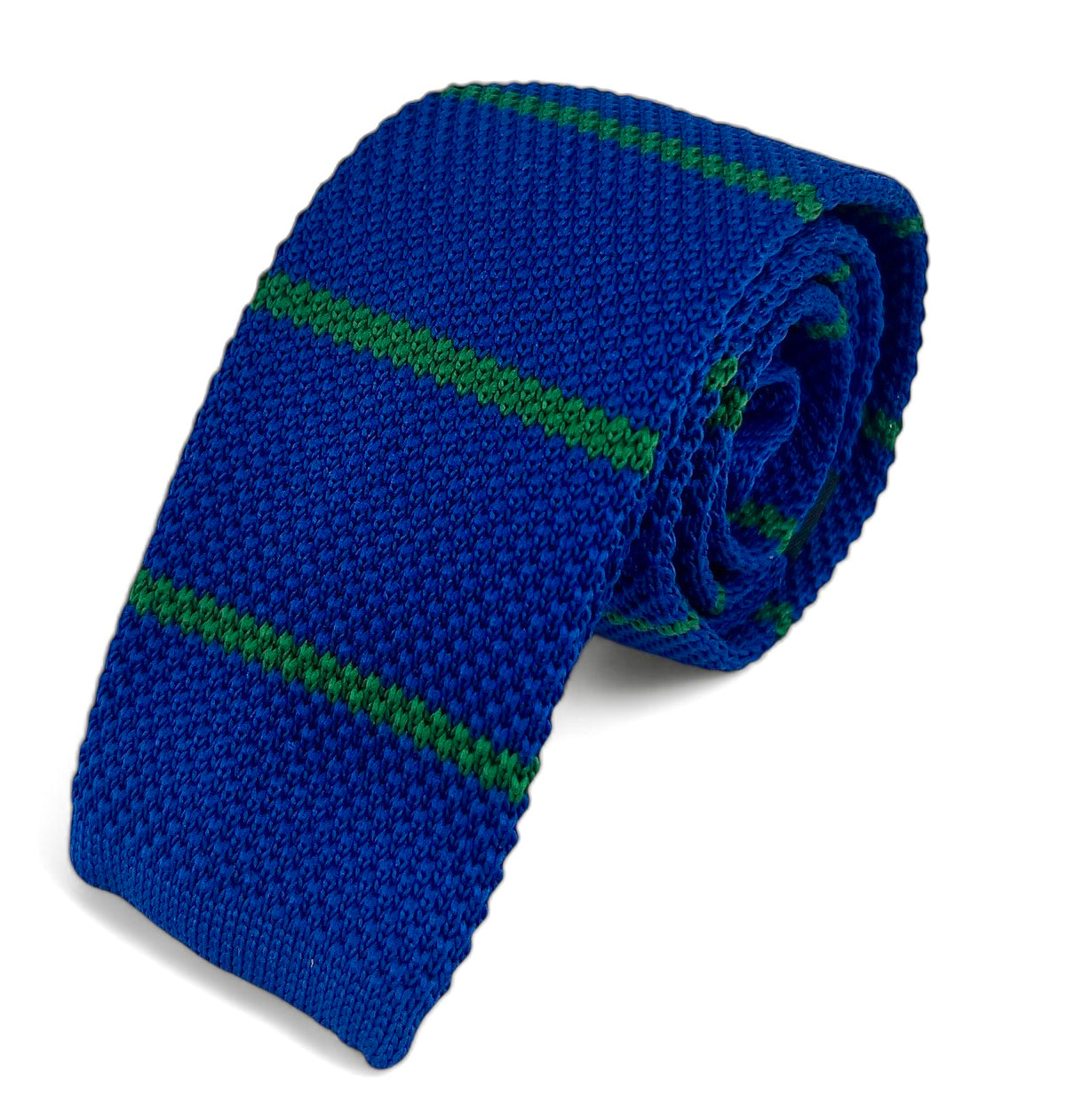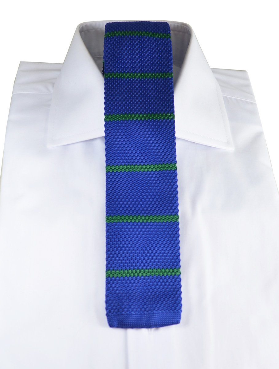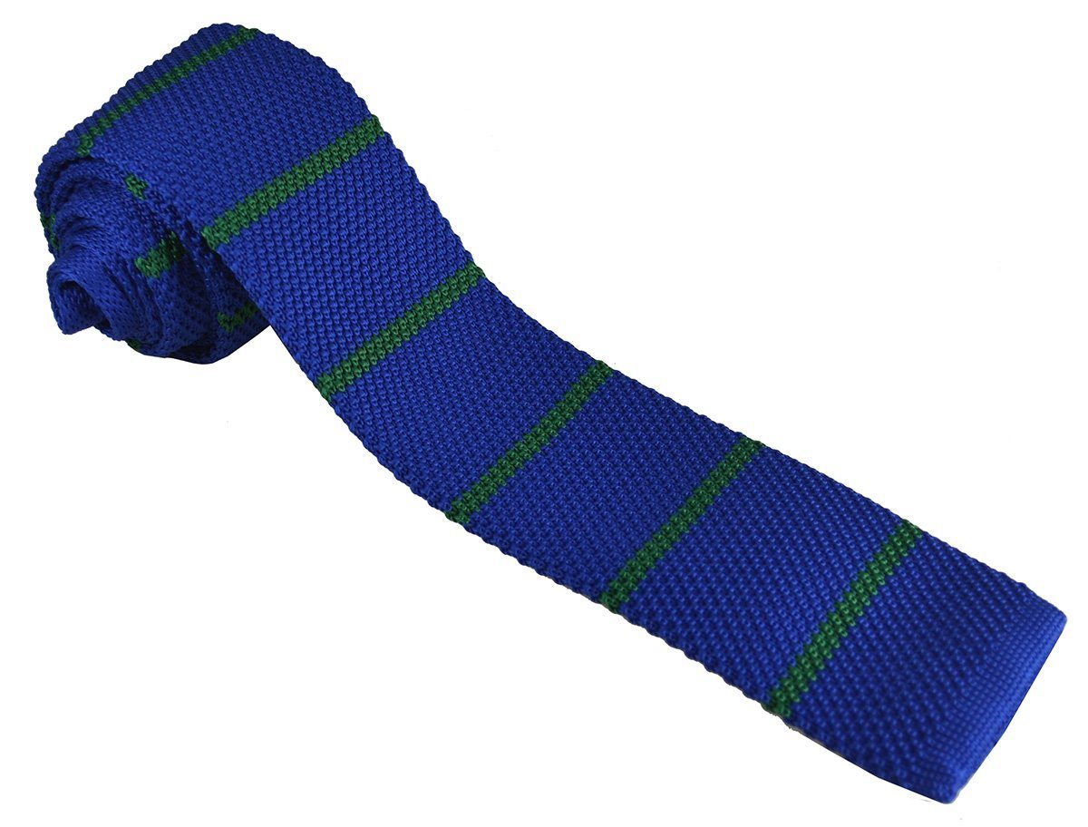 Embark on bold, risk-taking style with Paul Malone's Blue and Green Striped Knit Tie. This handmade, microfiber accessory boasts a...