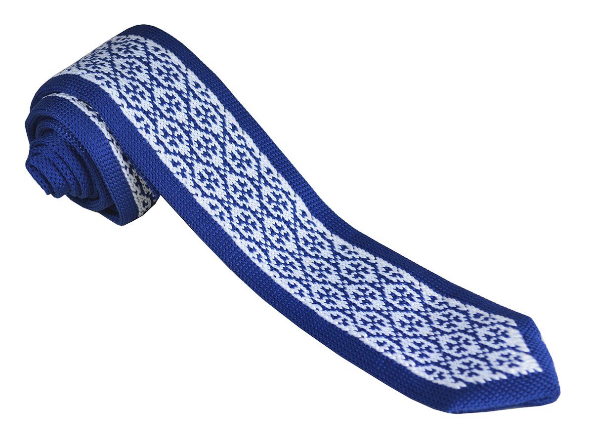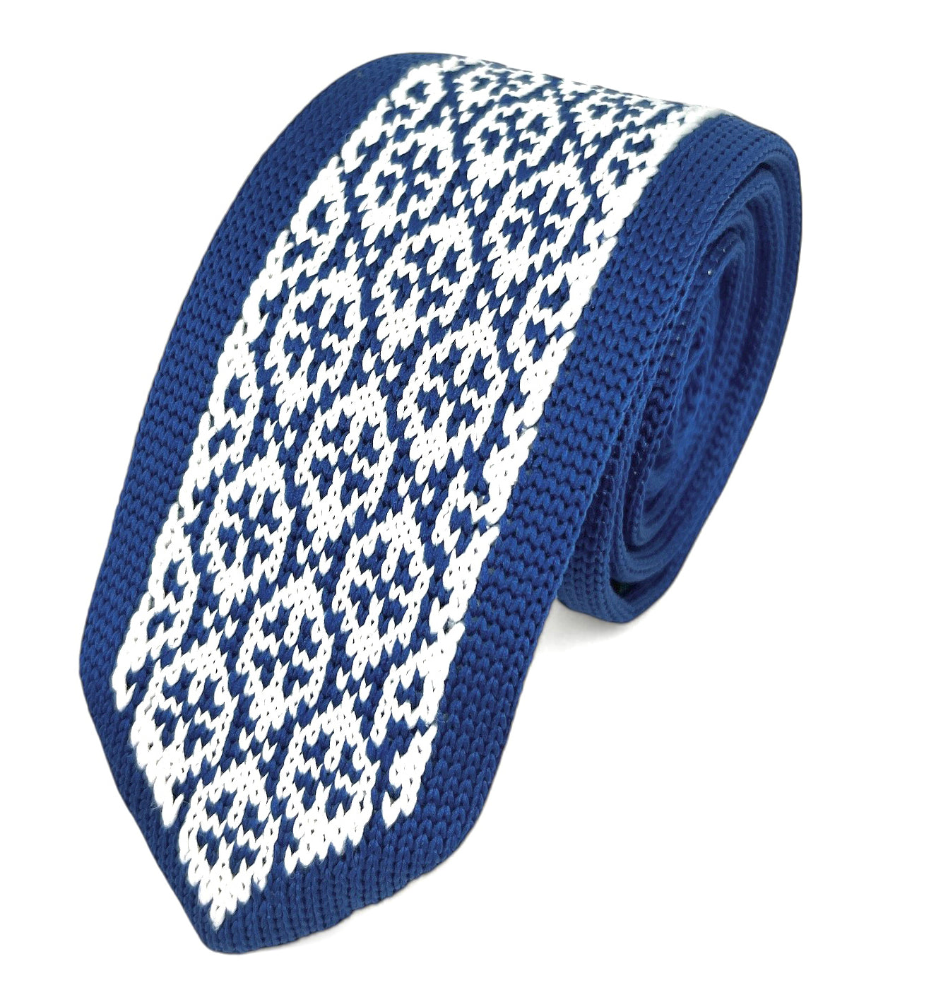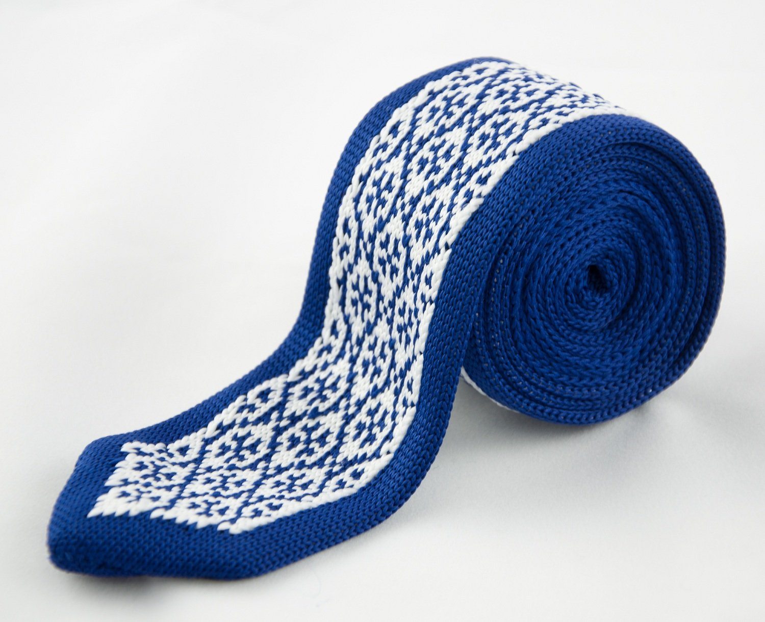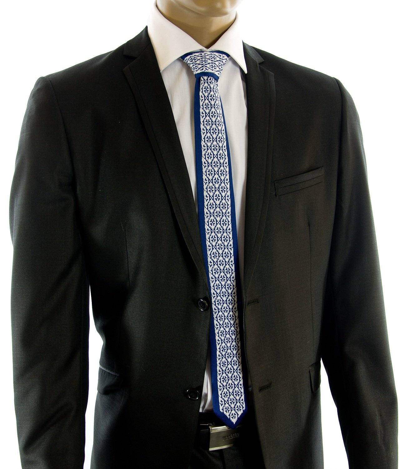 Experience fashion and function with the Blue and White Patterned Knit Tie by Paul Malone. Handcrafted and imported, this tie...
