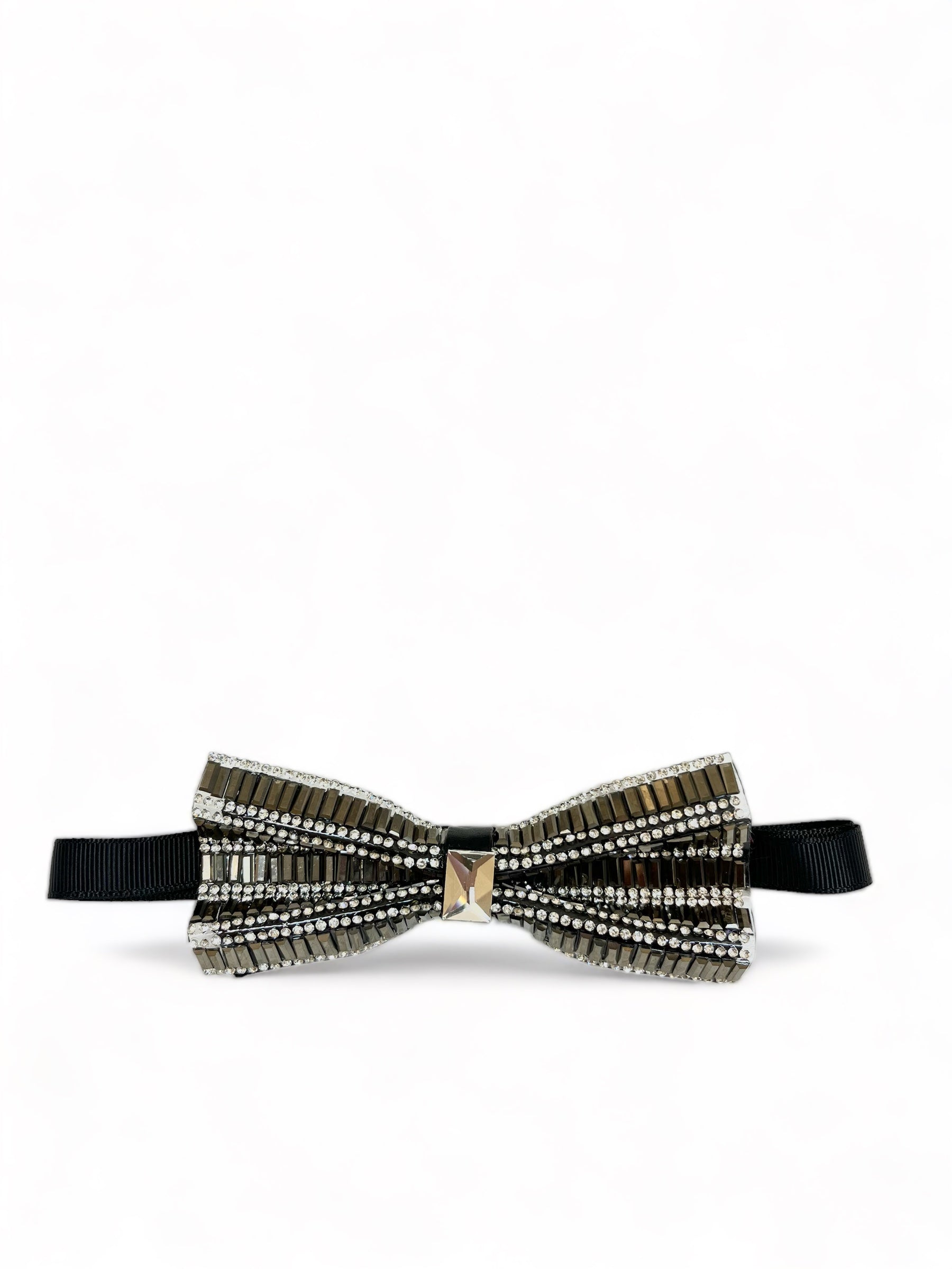 Formal Frosted Almond Jeweled pre-tied Bow Tie. Hand Made of 100% Polyester. Slim Bow Tie Cut. Modern Design, Size adjustable...