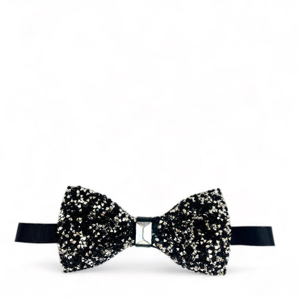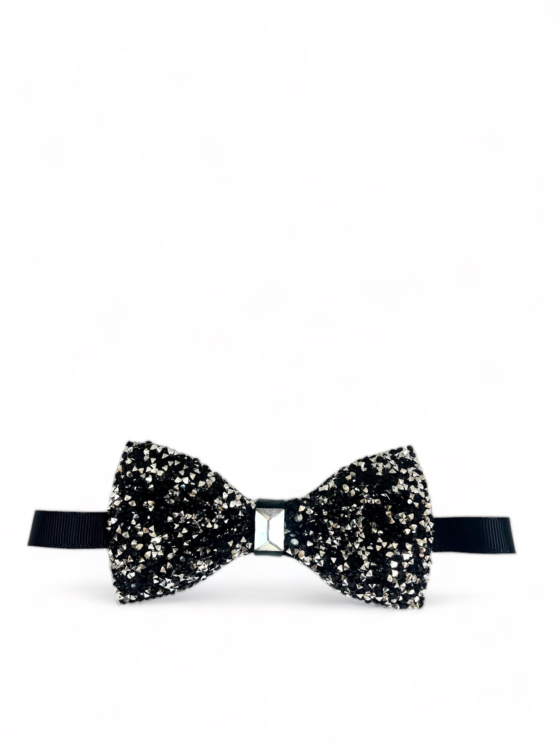 Formal Black and Silver Rhinestone pre-tied Bow Tie. Hand Made of 100% Polyester. Contemporary Bow Tie Cut. Modern Design, Size...