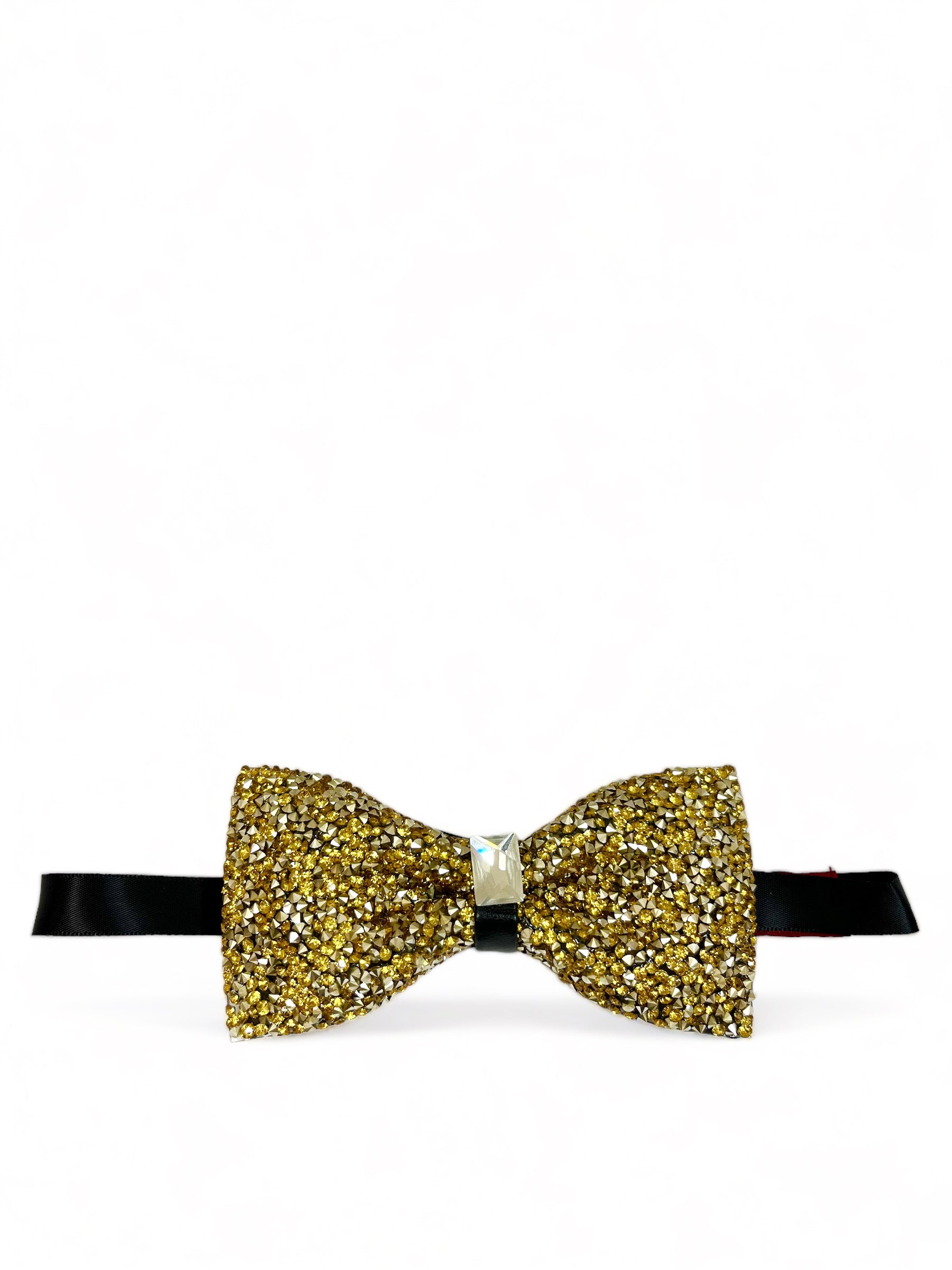 Formal Gold Crystal pre-tied Rhinestone Bow Tie. Hand Made of 100% Polyester. Contemporary Bow Tie Cut. Modern Design, Size adjustable...