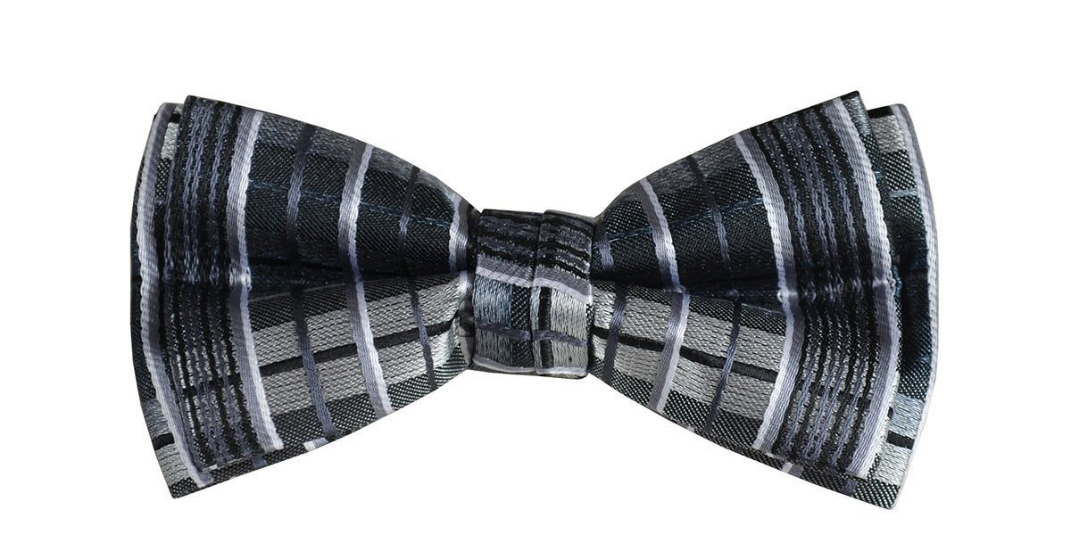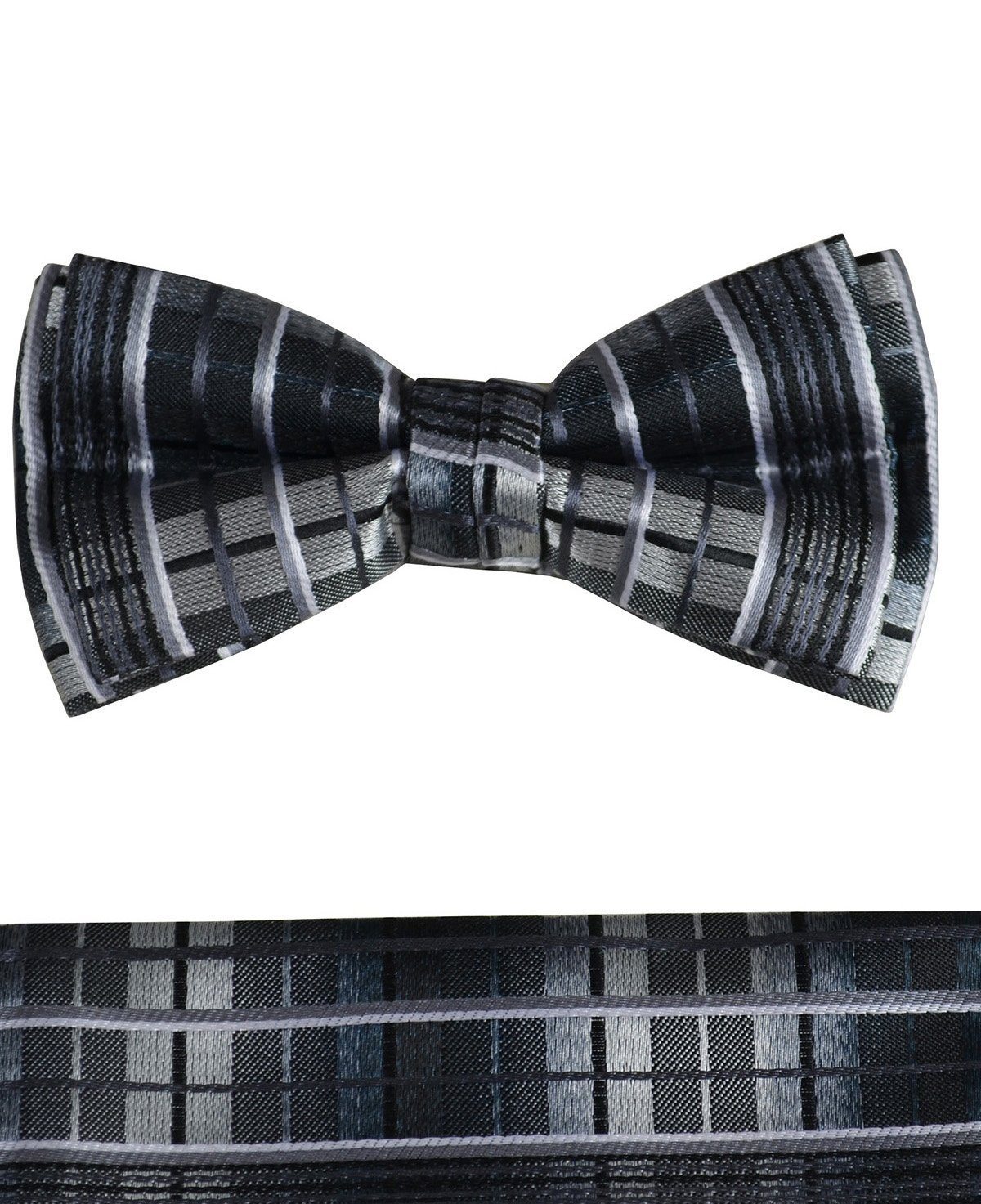 Black and White Boys Bow Tie and Pocket Square Set, Pre-tied