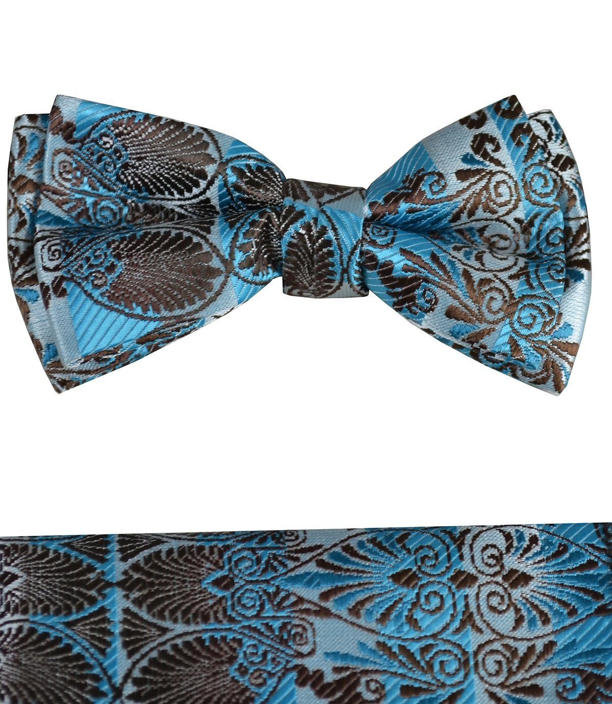 Brown and Blue Boys Bow Tie and Pocket Square Set, Pre-tied