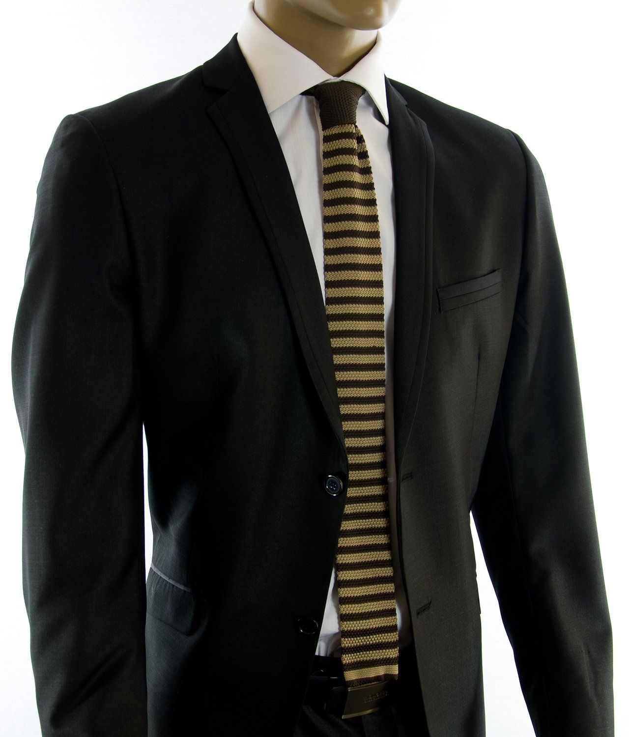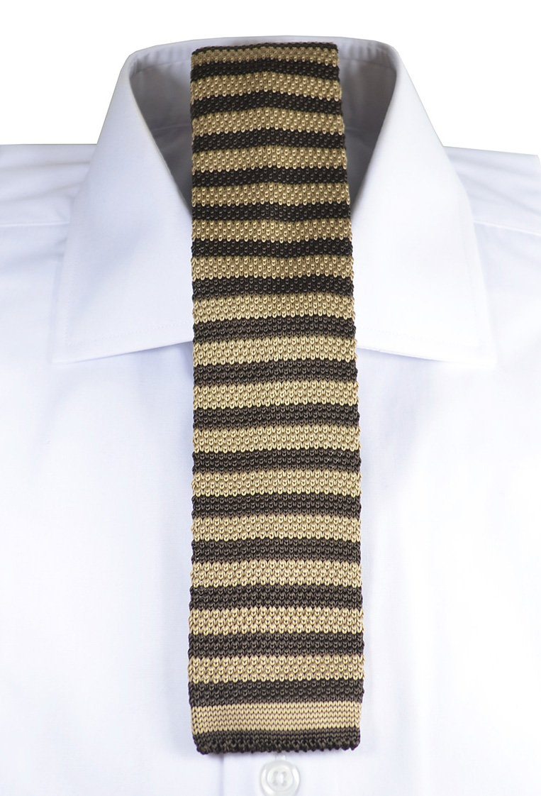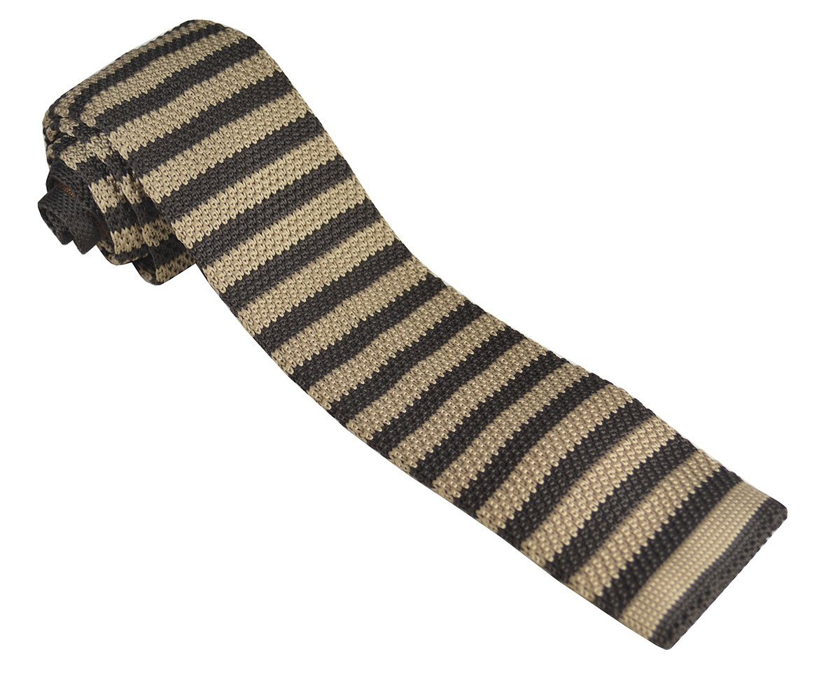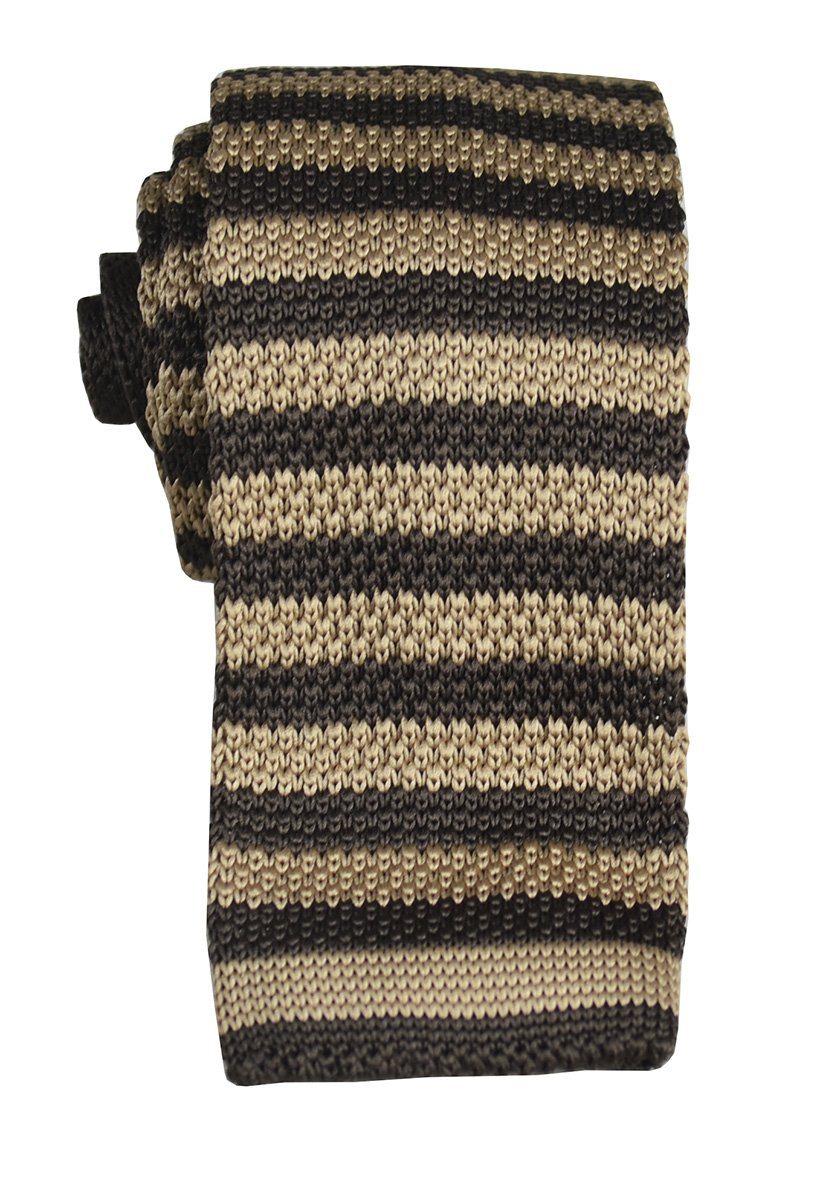 Elevate your style with this handmade Striped Brown and Tan Knit Tie by Paul Malone. The modern square tip and...