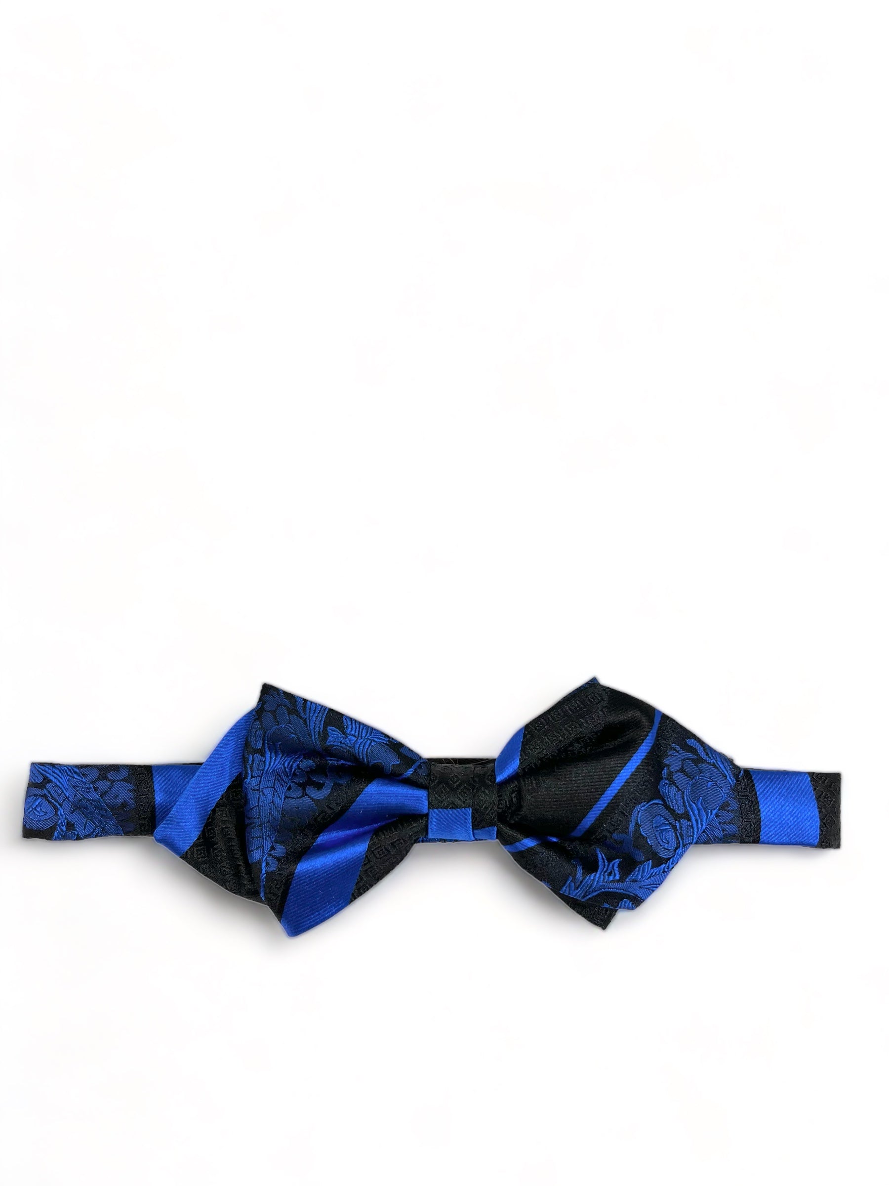 This Royal Blue and Black diamond shaped bow tie set is hand made of 100% pure silk and includes the...