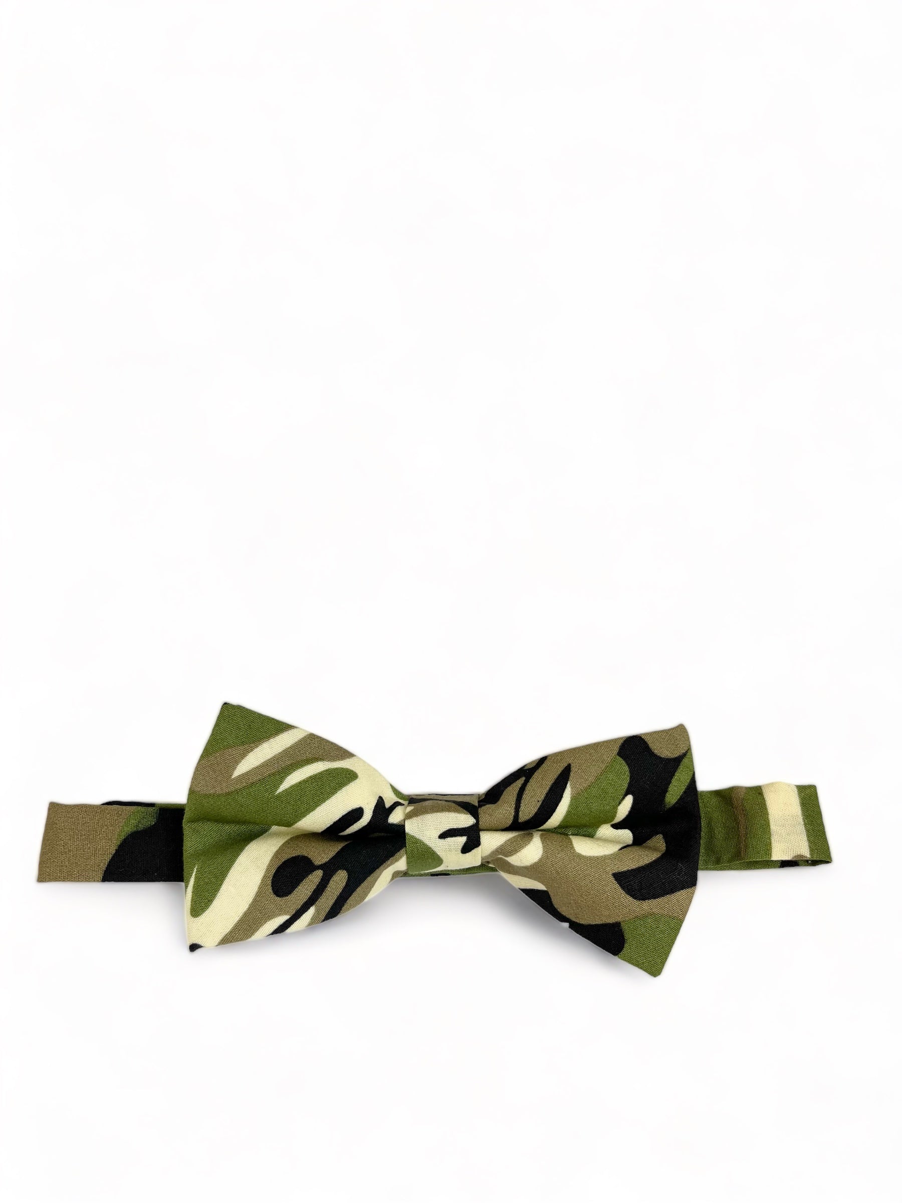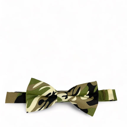 Green Camo Hand made cotton bow tie by Paul Malone, jacquard woven. Imported. Size adjustable from neck sizes 14.5 through 18.5 Crafted with care by renowned designer Paul Malone, this unique green camouflage bow tie is sure to make a statement. Expertly woven jacquard cotton ensures a comfortable fit, adjustable to neck sizes 14.5 through 18.5. Refined elegance awaits.