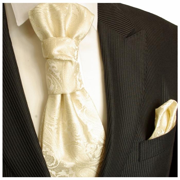 Champagne Paisley Cravat and Pocket Square Set