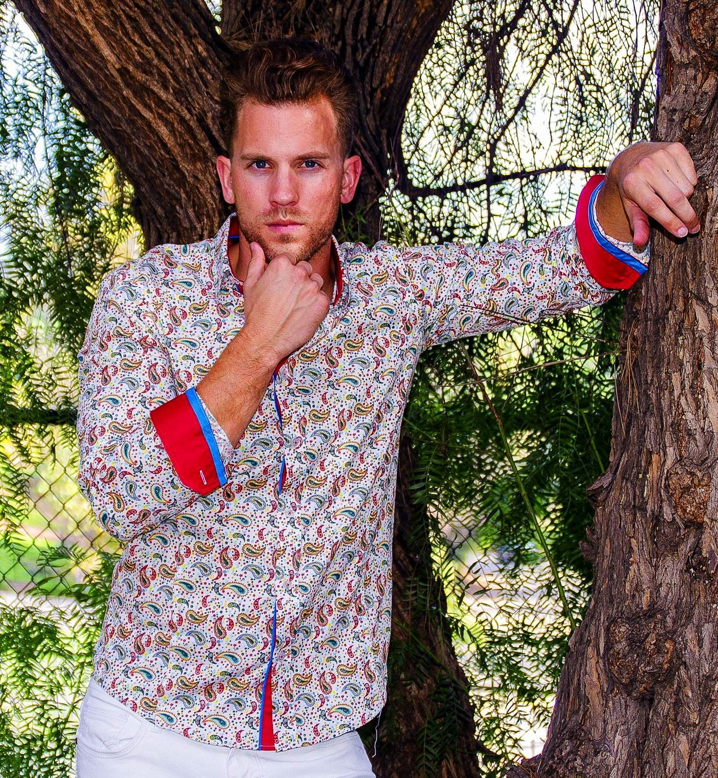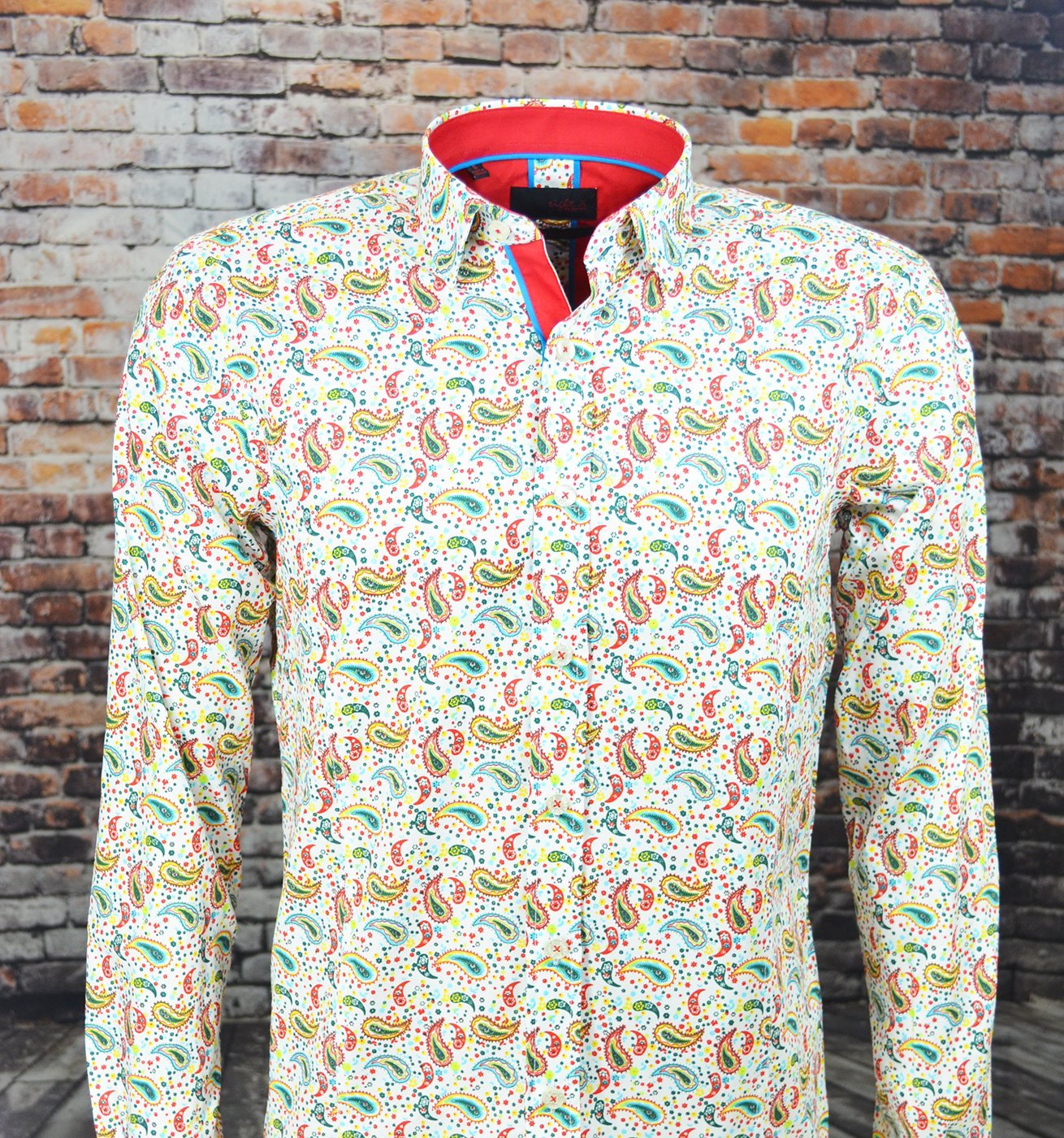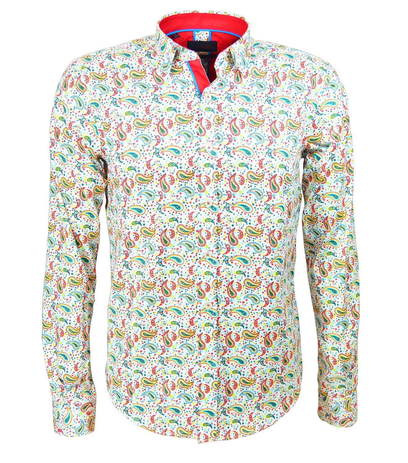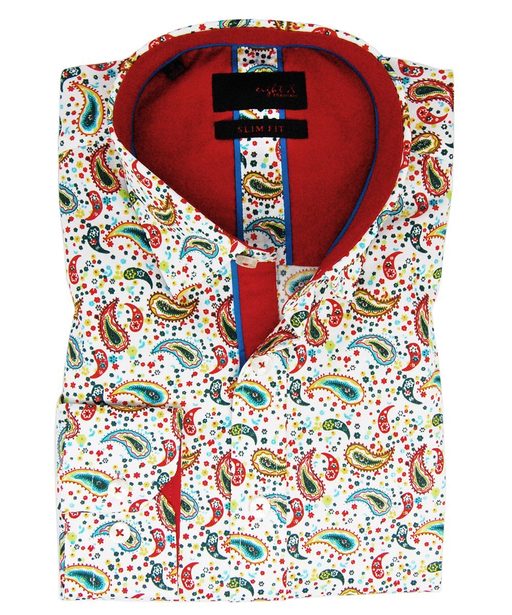Designer Dress Shirt by Eight X with an exciting Paisley Print in exciting Colors, from Yellow over Red to Green,...