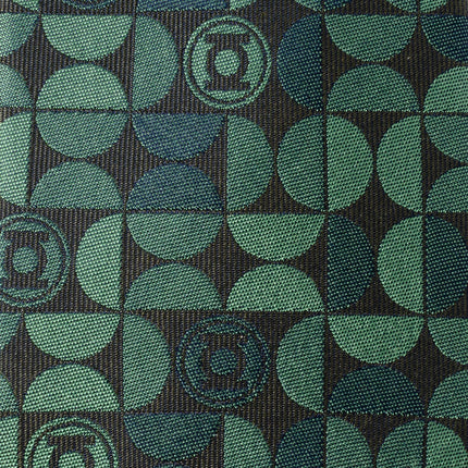 Beware the power of Green Lantern's light. Green Lantern icon motifs are scattered within a green art deco pattern set...