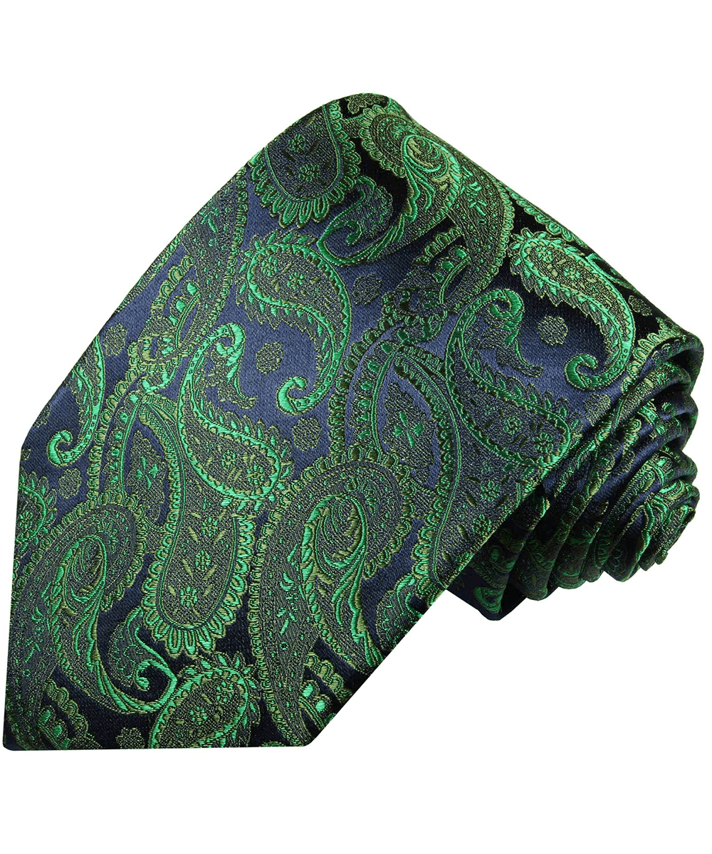 Emerald Green Paisley Tie on dark Navy Background. One of our most popular Wedding Neckties in our Collection, Best Worn...