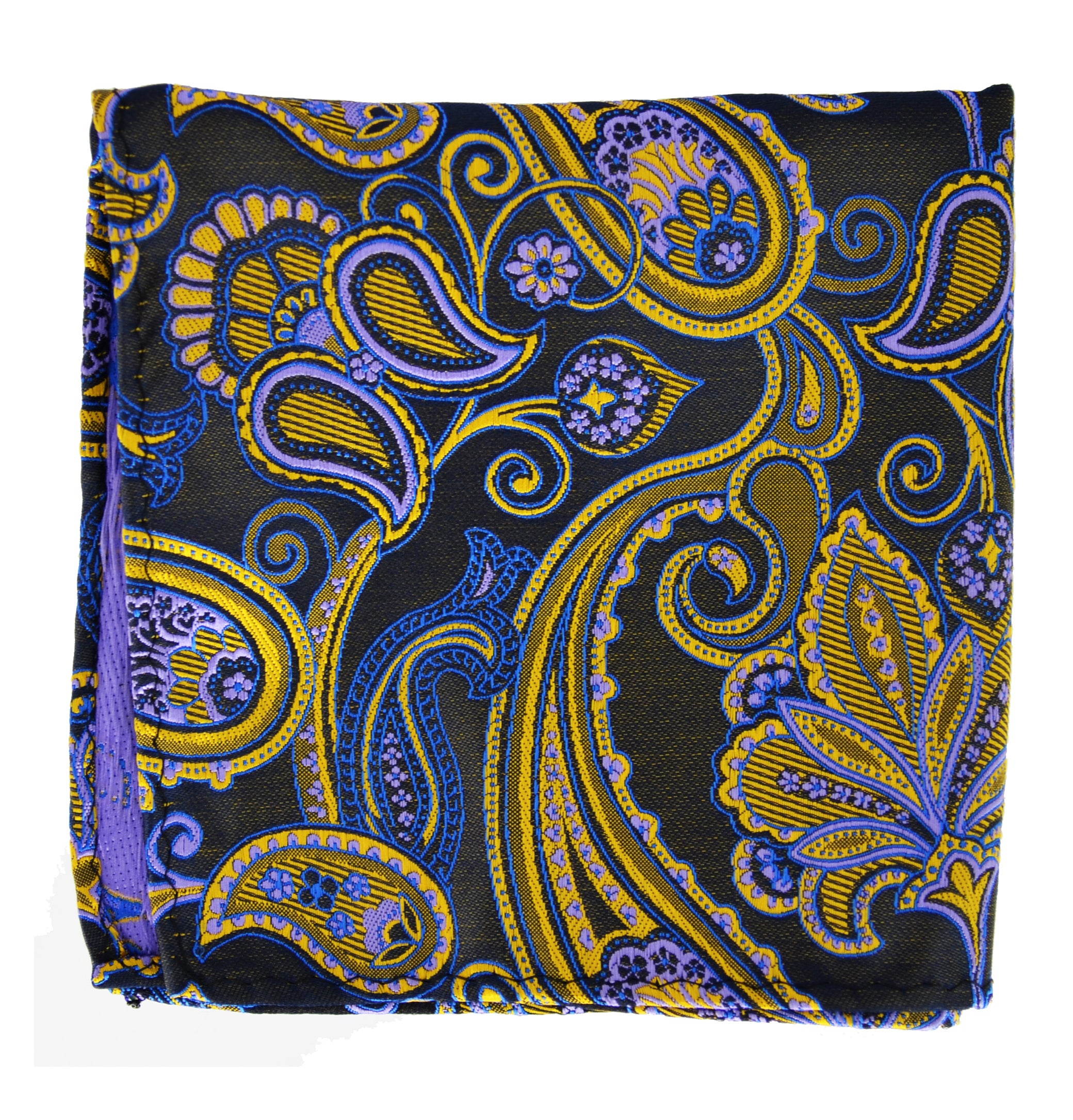Experience the exclusive beauty of our BerlinBound Black, Gold, Violet and Navy Paisley Men's Pocket Square. Handcrafted and imported, it...