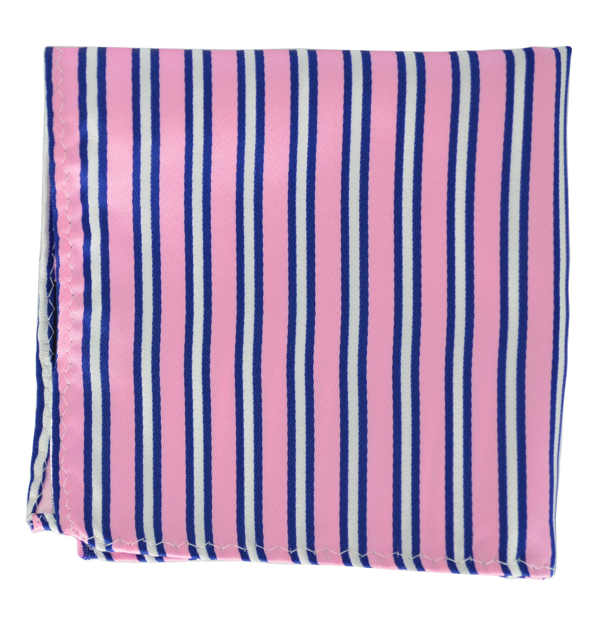Pink Pocket Square by BerlinBound with Navy and White Frame Stripes . This Pocket Square is Hand Made and Woven....